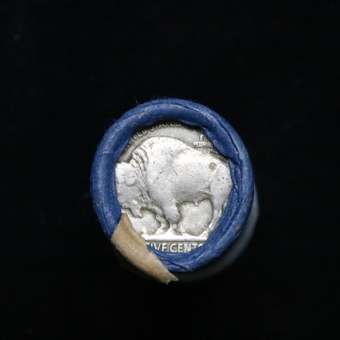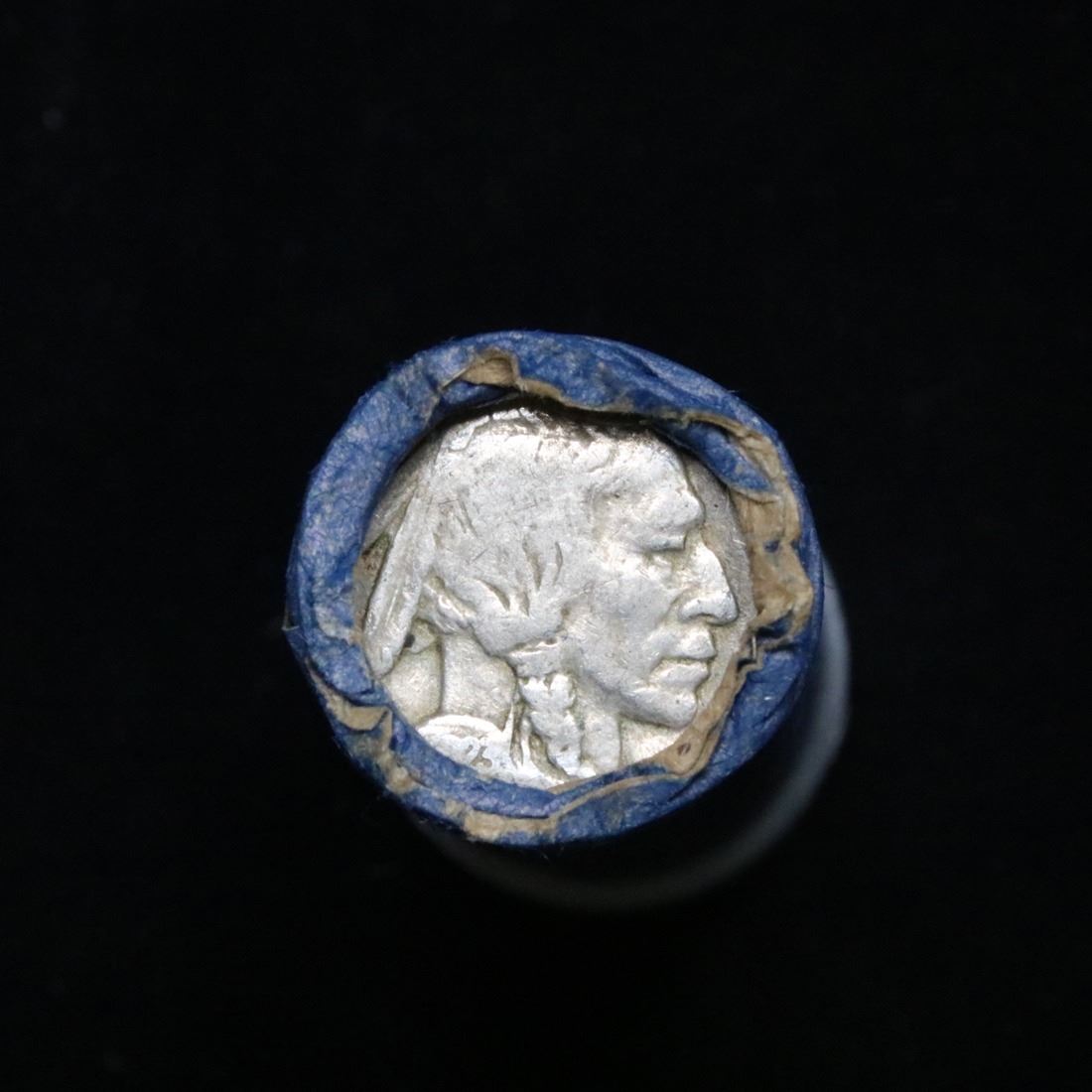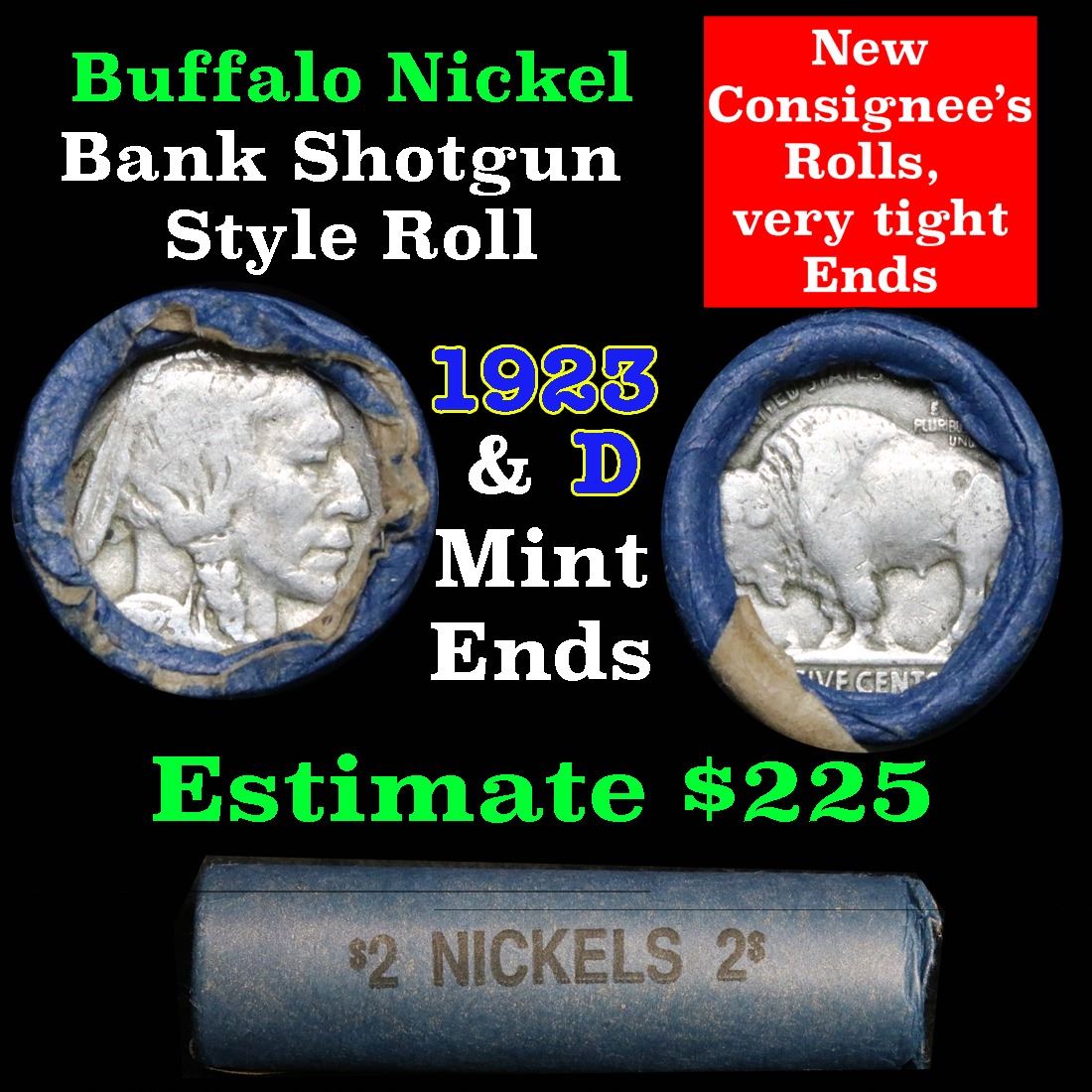 Buffalo Nickel Shotgun Roll in Old Bank Style Wrapper 1923 & d Mint Ends. The roll is held in an old, rare Bank style wrapper. They are all frrom one Estate. The ends on these rolls are very tight. We will guarantee they are all full dates.