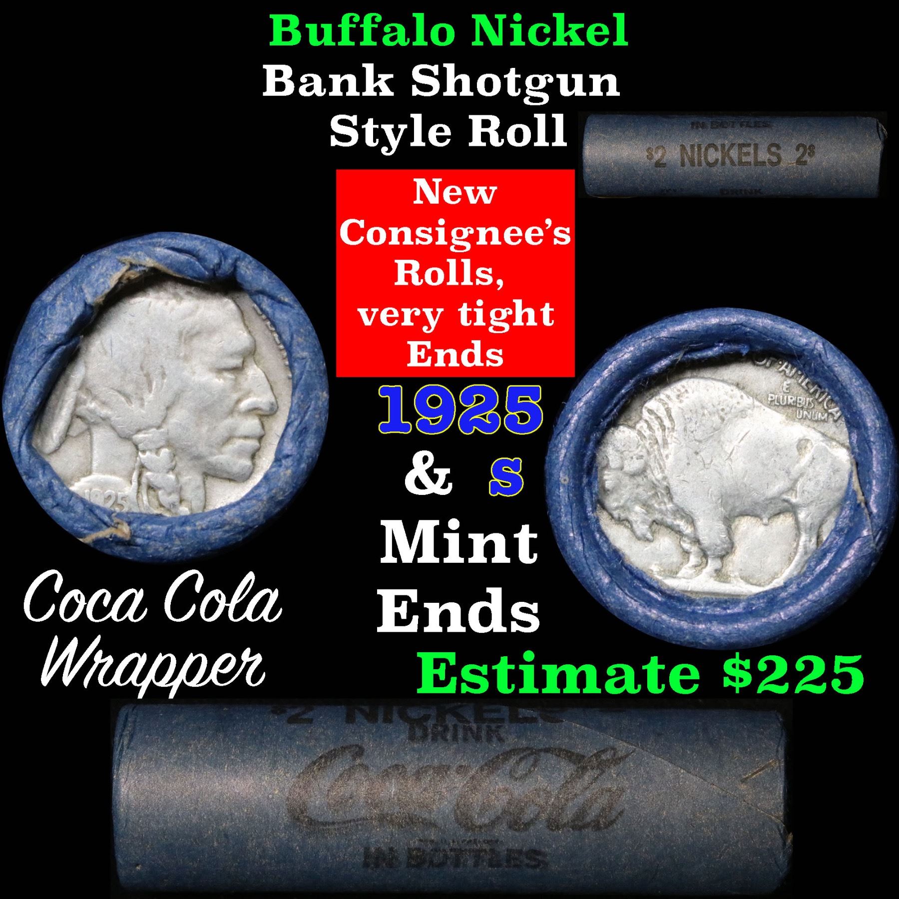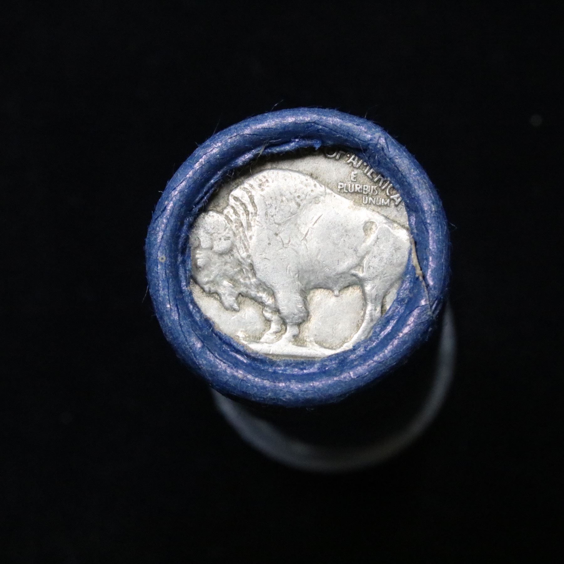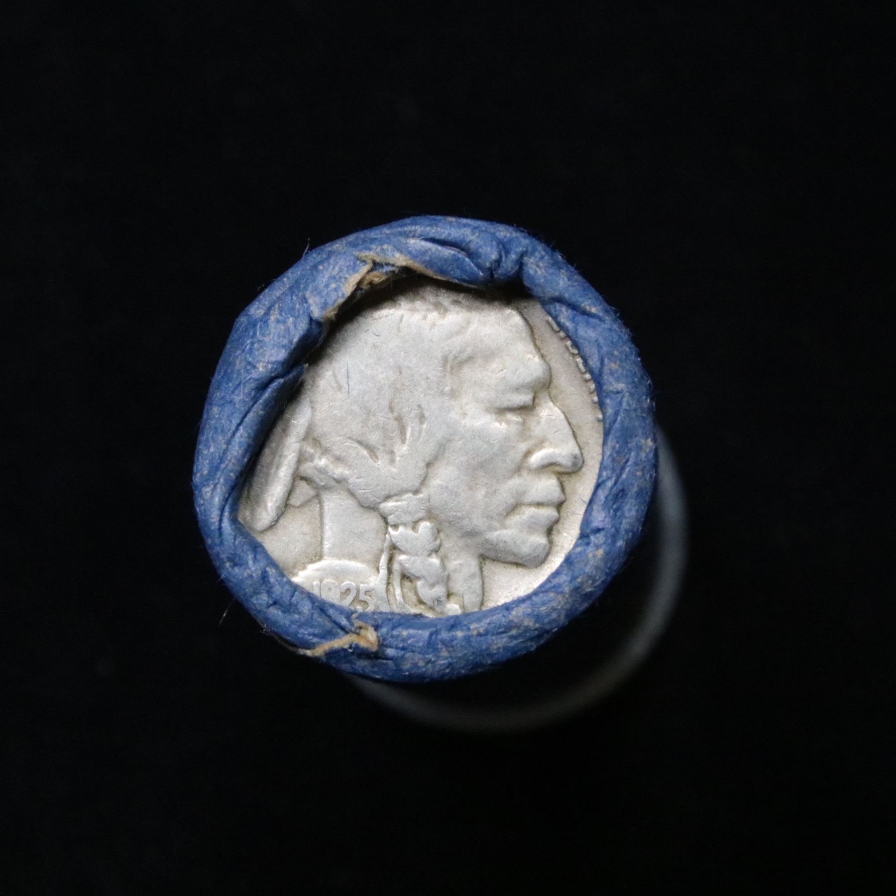 Buffalo Nickel Shotgun Roll in Old Bank Style Wrapper 1925 & s Mint Ends . .. The roll is held in an old, rare Bank style wrapper. They are all frrom one Estate. The ends on these rolls are very tight. We will guarantee they are all full dates.