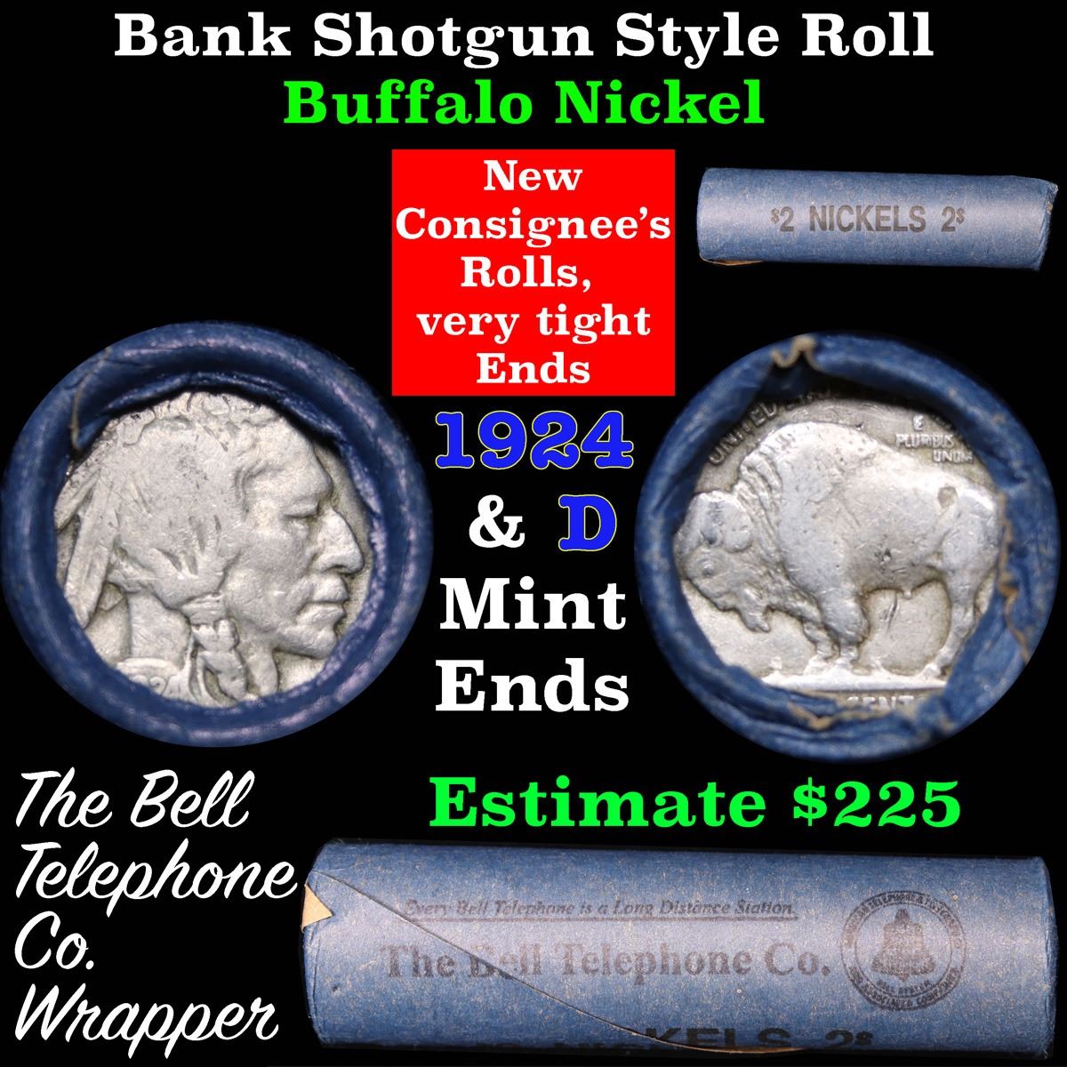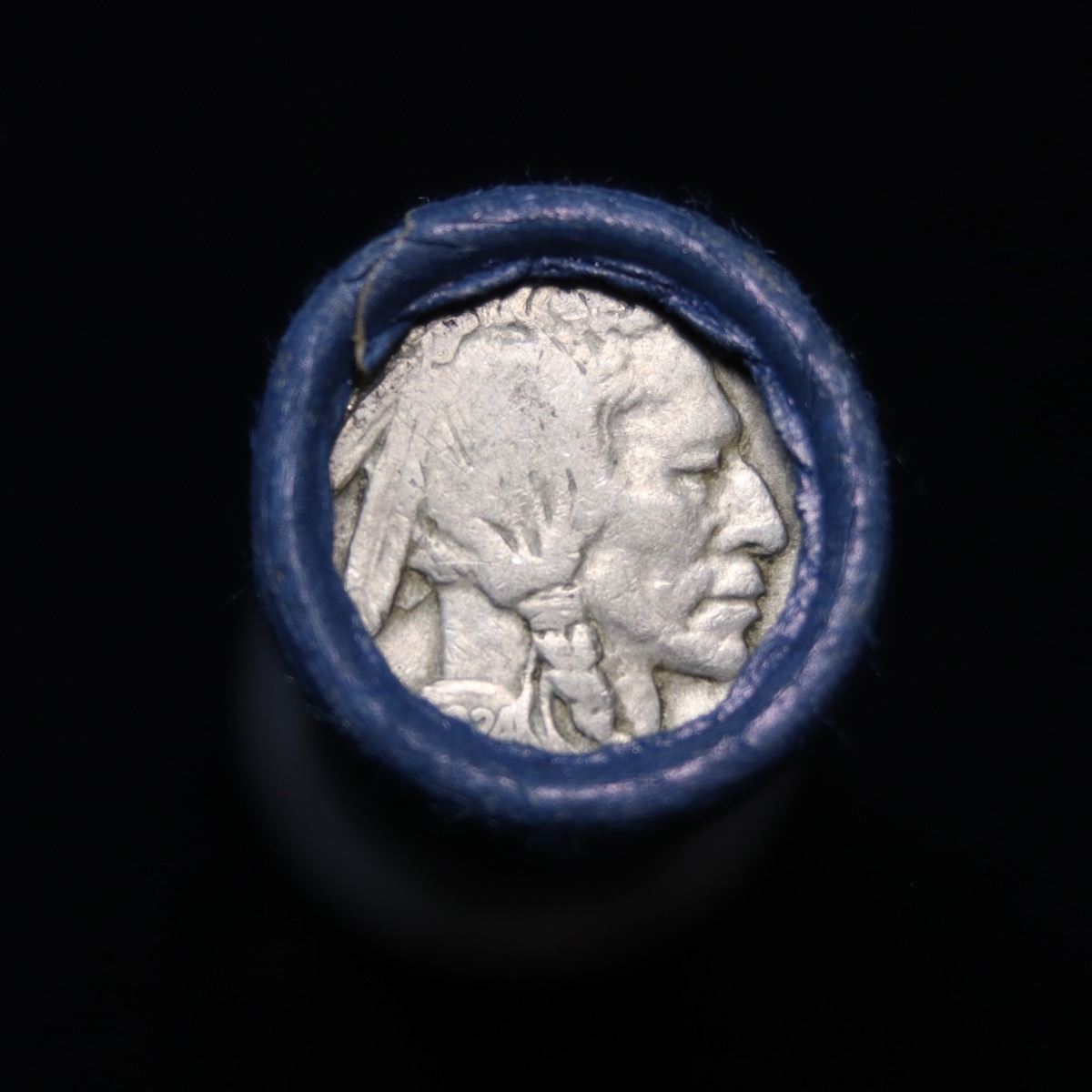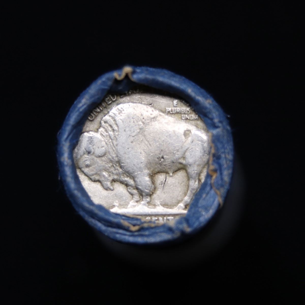 Buffalo Nickel Shotgun Roll in Old Bank Style Wrapper 1929 & d Mint Ends . . Grades. The roll is held in an old, rare Bank style wrapper. They are all frrom one Estate. The ends on these rolls are very tight. We will guarantee they are all full dates.