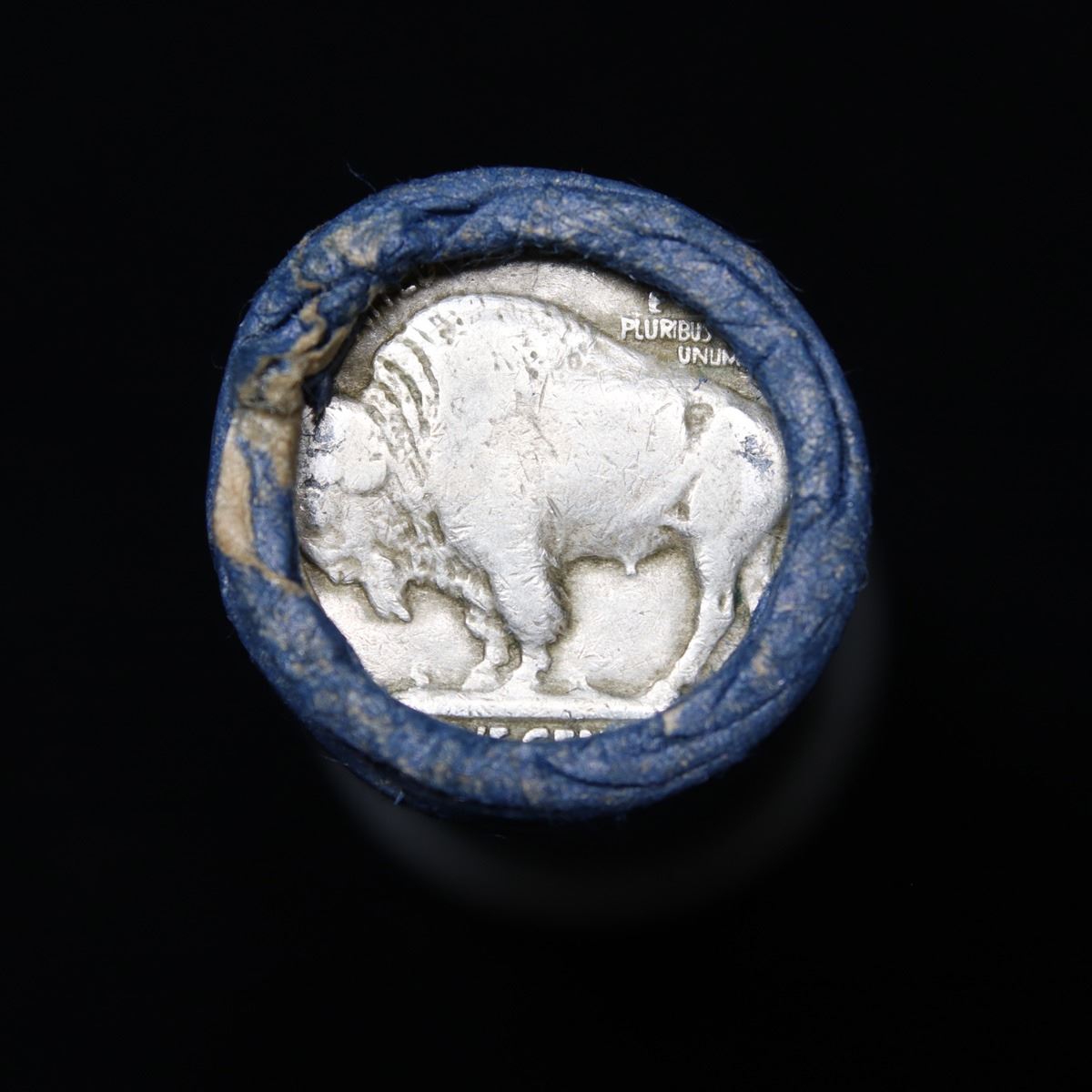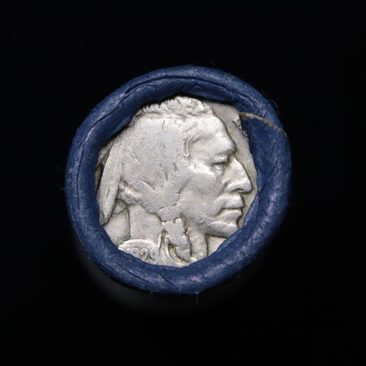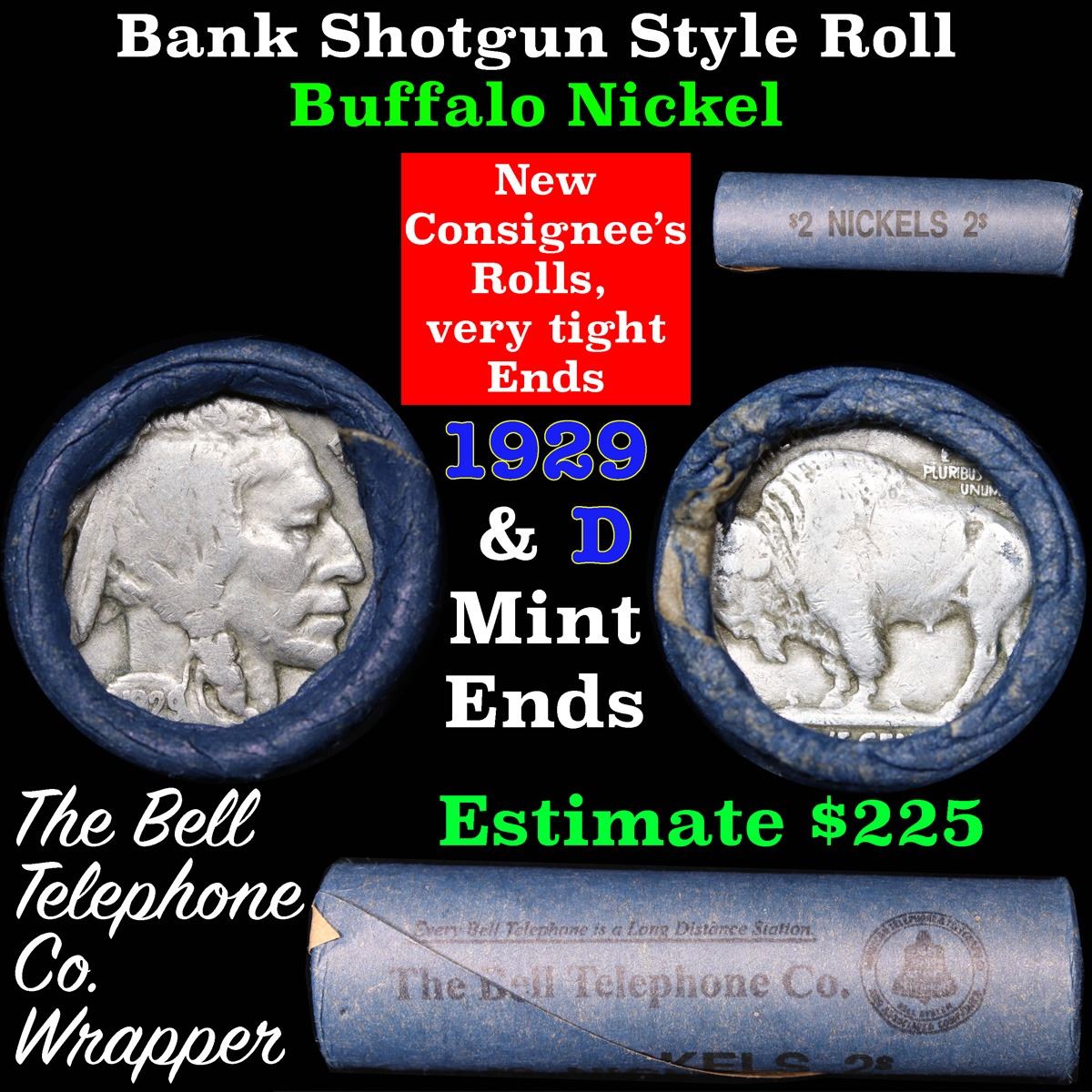Buffalo Nickel Shotgun Roll in Old Bank Style Wrapper stamped 'Bell Telephone' 1929 & d Mint Ends. The roll is held in an old, rare Bank style wrapper stamped with "The Bell Telephone Co" & logo from the 1960's. They are all frrom one Estate. The ends on these rolls are very tight. We will guarantee they are all full dates.