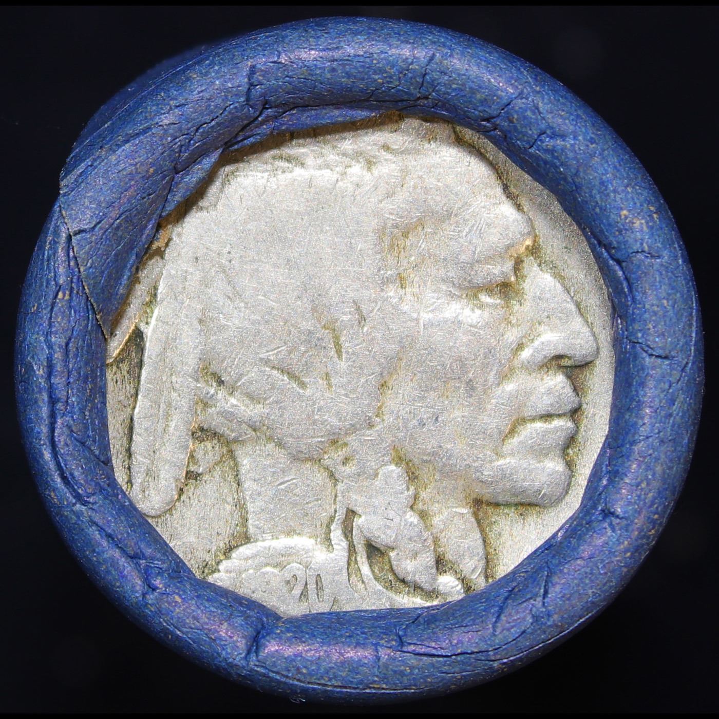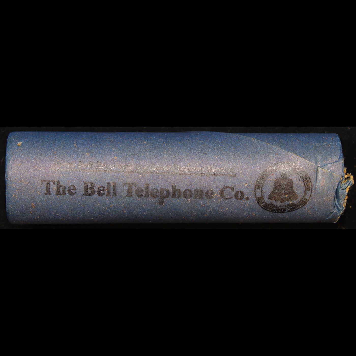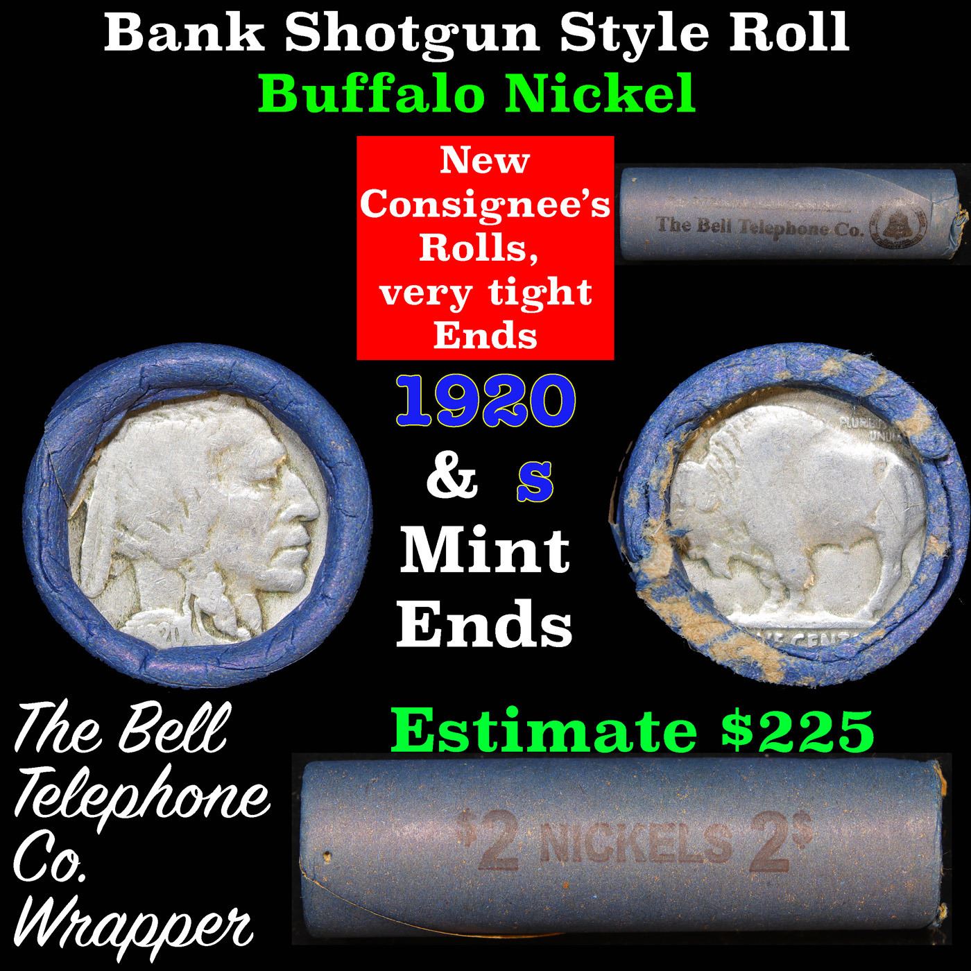 Buffalo Nickel Shotgun Roll in Old Bell Telephone Bank Wrapper 1920 & s Mint Ends. The roll is held in an old Bank style wrapper. They are all frrom one Estate. The ends on these rolls are very tight. We will guarantee they are all full dates.