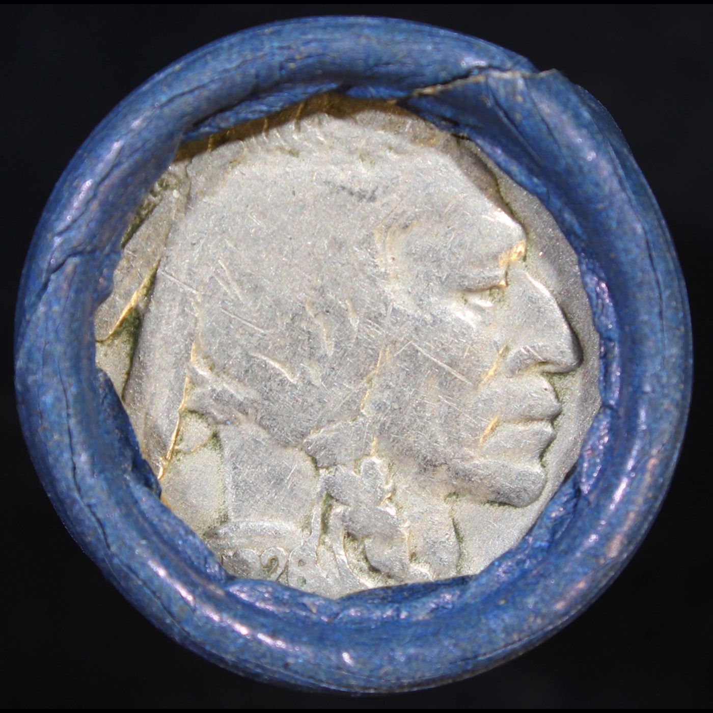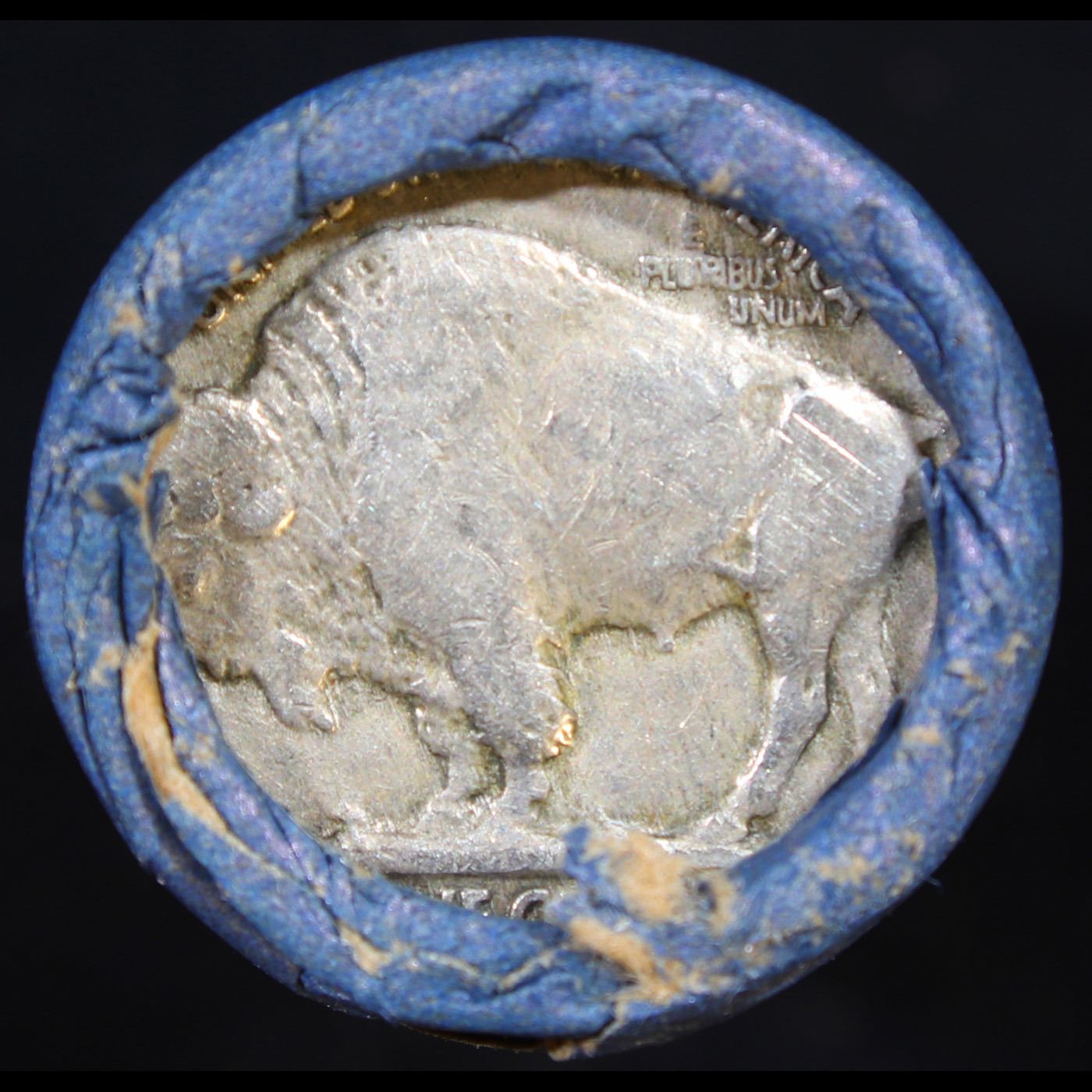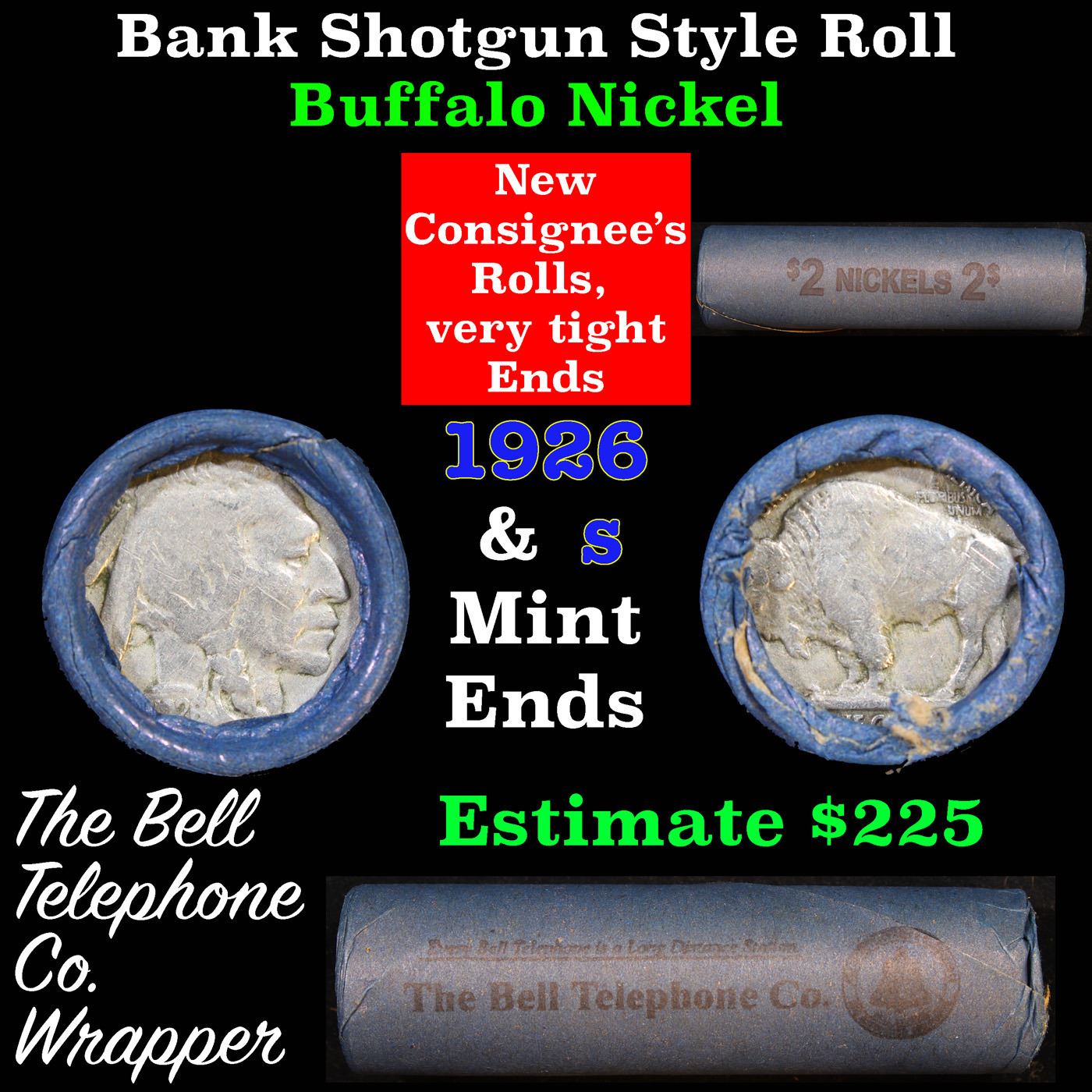 Buffalo Nickel Shotgun Roll in Old Bell Telephone Bank Wrapper 1926 & s Mint Ends. The roll is held in an old Bank style wrapper. They are all frrom one Estate. The ends on these rolls are very tight. We will guarantee they are all full dates.