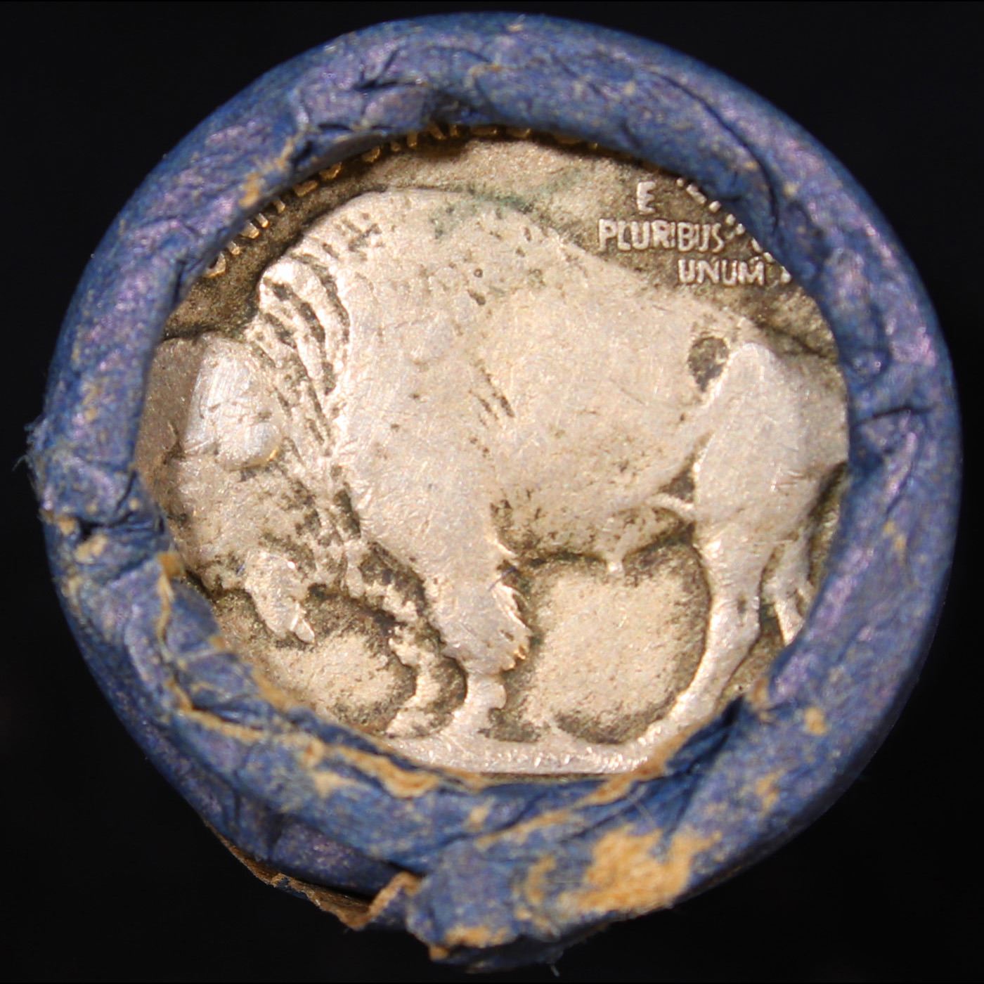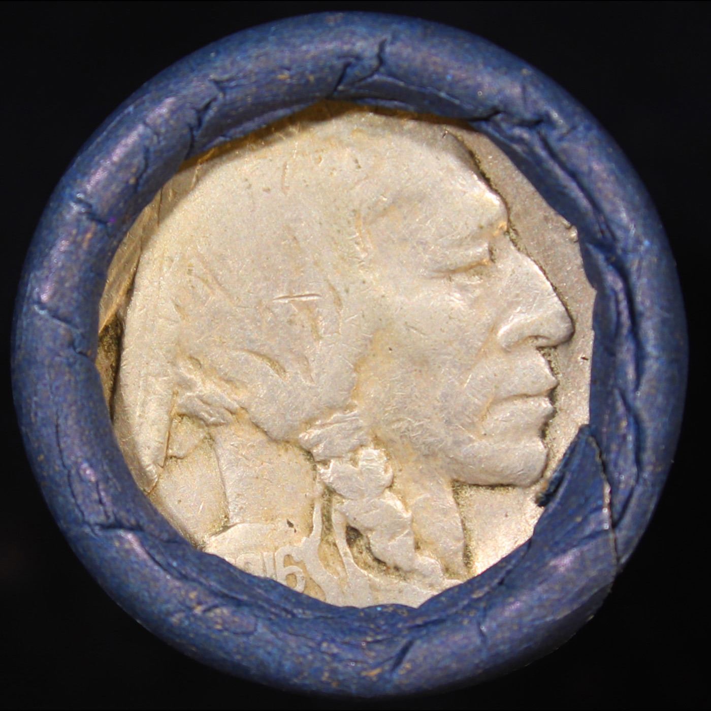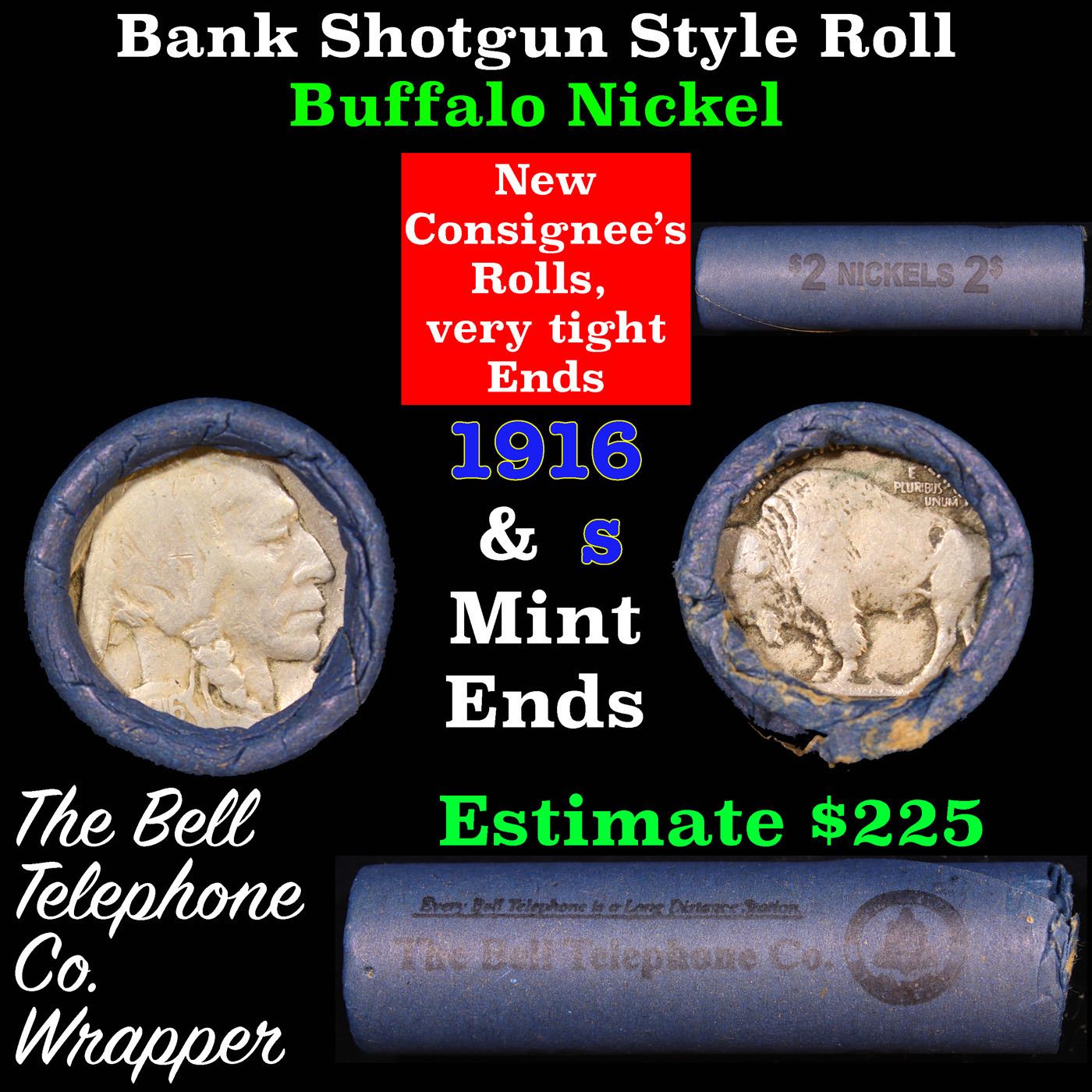 Buffalo Nickel Shotgun Roll in old Bell Telephone Bank Wrapper 1916 & s Mint Ends. The roll is held in an old Bank style Bell Telephone Wrapper. They are all frrom one Estate. The ends on these rolls are very tight. We will guarantee they are all full dates.