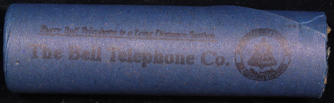 Buffalo Nickel Shotgun Roll in old Bell Telephone Bank Wrapper 1923 & d Mint Ends. The roll is held in an old Bank style Bell Telephone Wrapper. They are all frrom one Estate. The ends on these rolls are very tight. We will guarantee they are all full dates.
