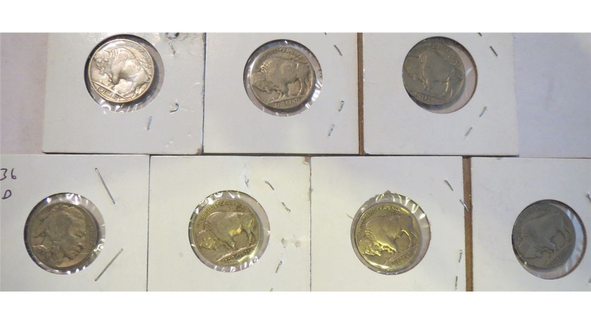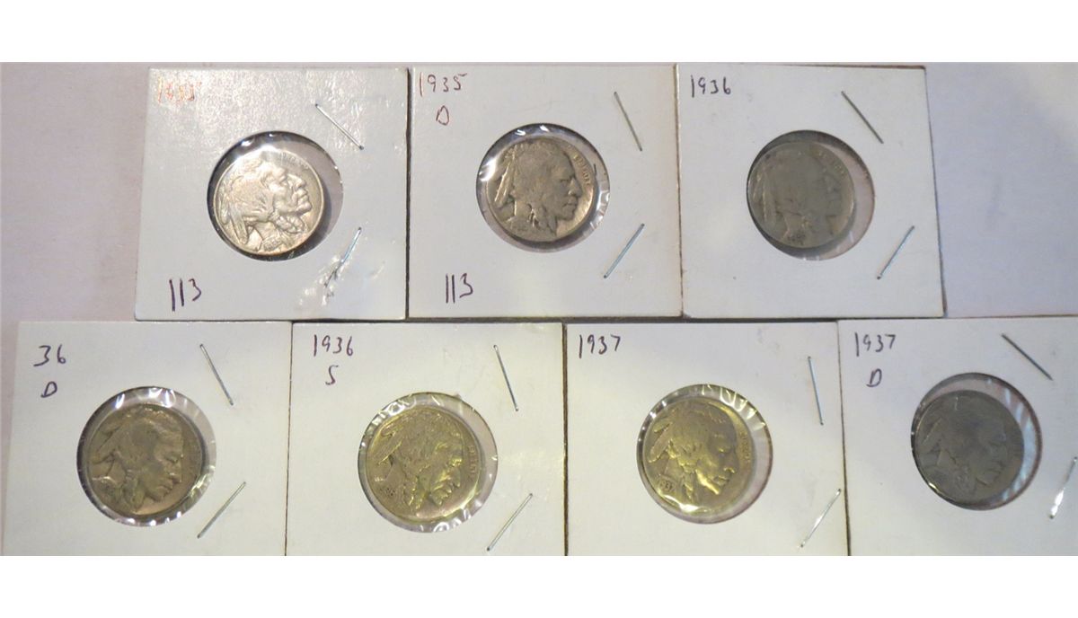 Buffalo Nickels: 1935, 1935d, 1936, 1936d, 1936s, 1937 & 1937d
