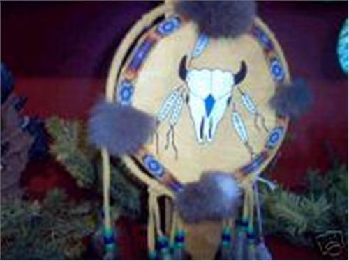 This is a hand made shield made by myself a Mohawk aboriginal. This shield is genuine moose leather with real feathers, beads, and tassles,rabbit fur , all hand painted. Please allow 1-2 weeks for delivery