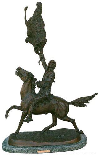 Buffalo Signal" American Handmade Solid Bronze Sculpture By Frederic Remington 14"x 8"