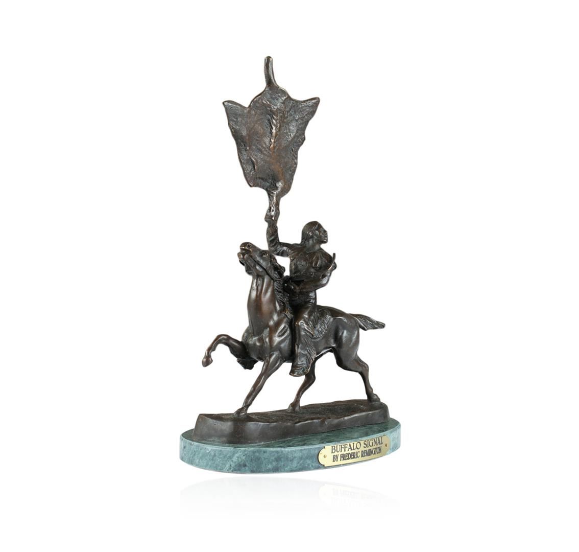 One "Buffalo Signal" Bronze Replica By Frederic Remington. 8 Inches tall.