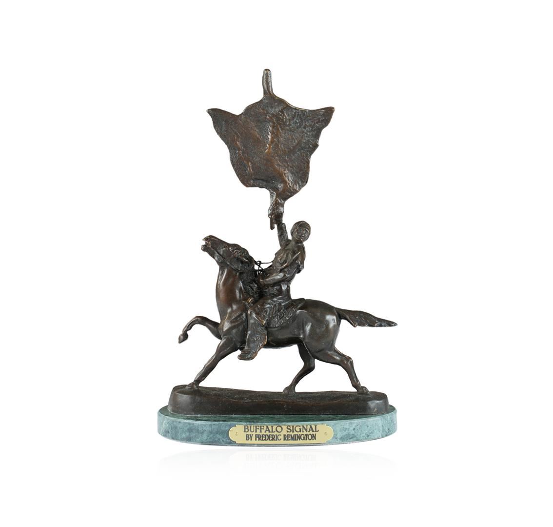 One "Buffalo Signal" Bronze Replica By Frederic Remington. 8 Inches tall.