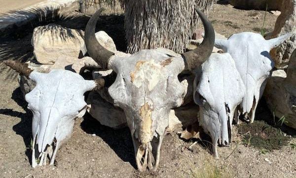 Buffalo skull with three Cow Skulls.