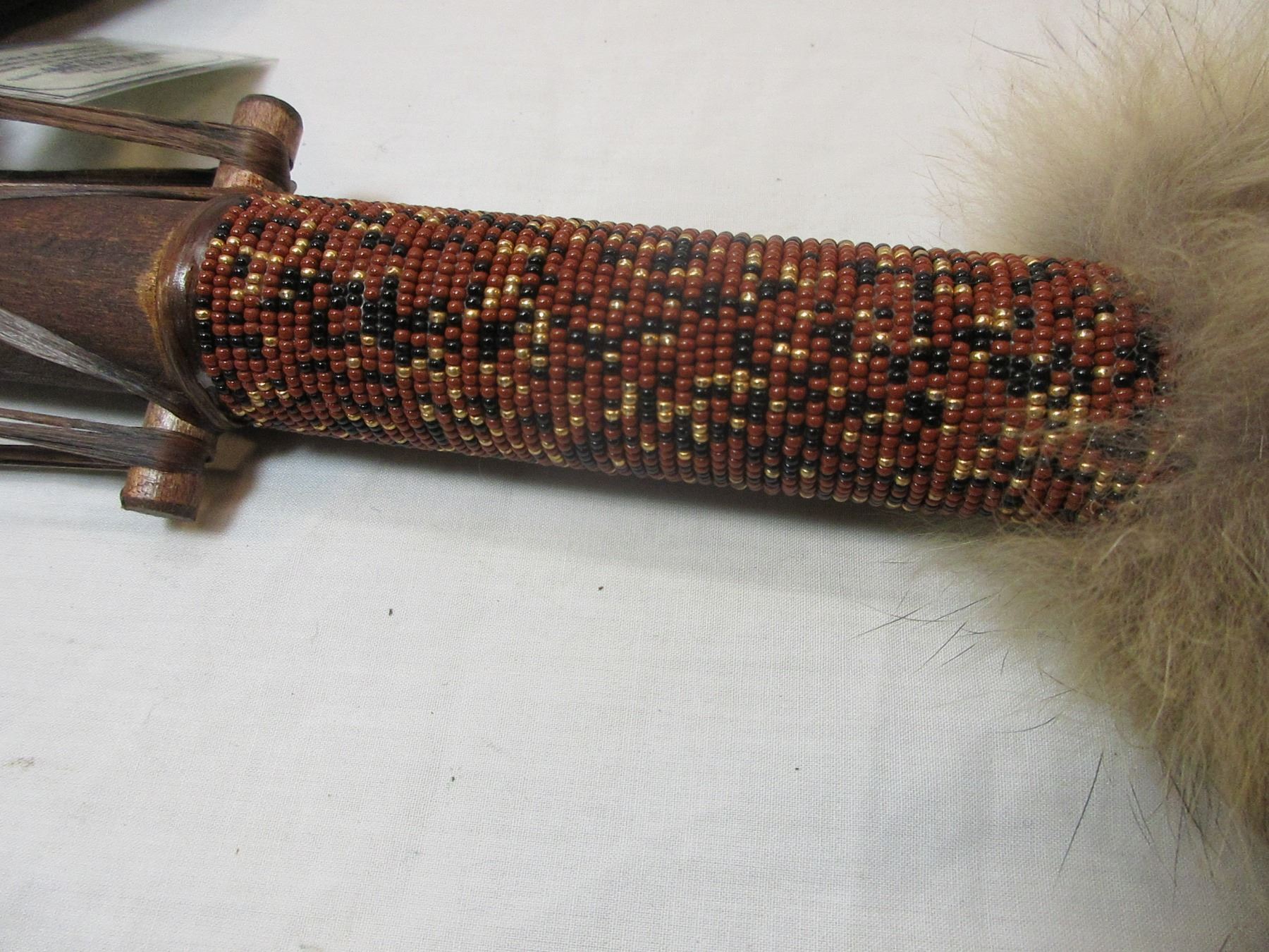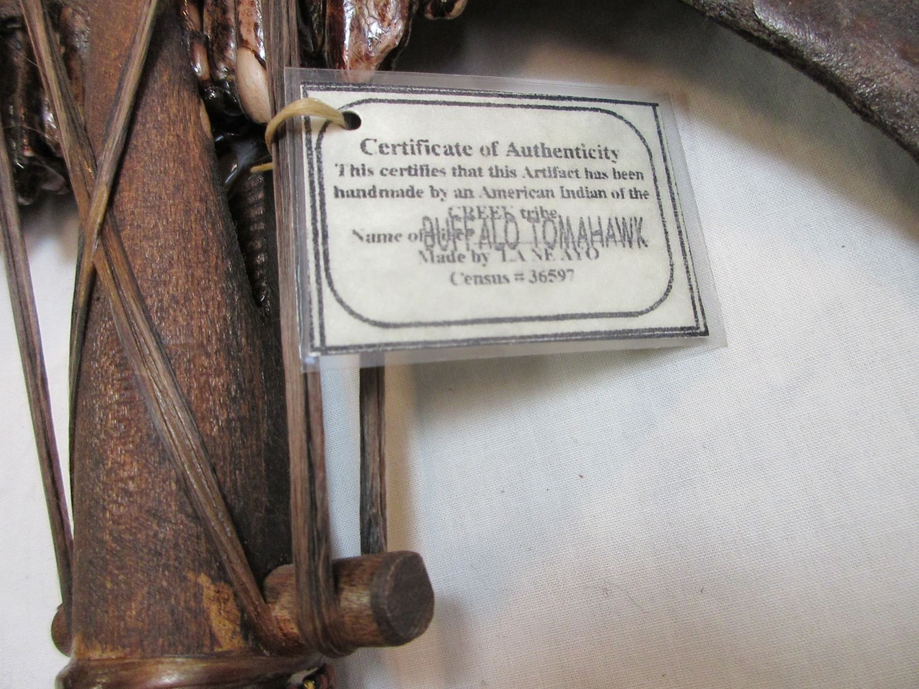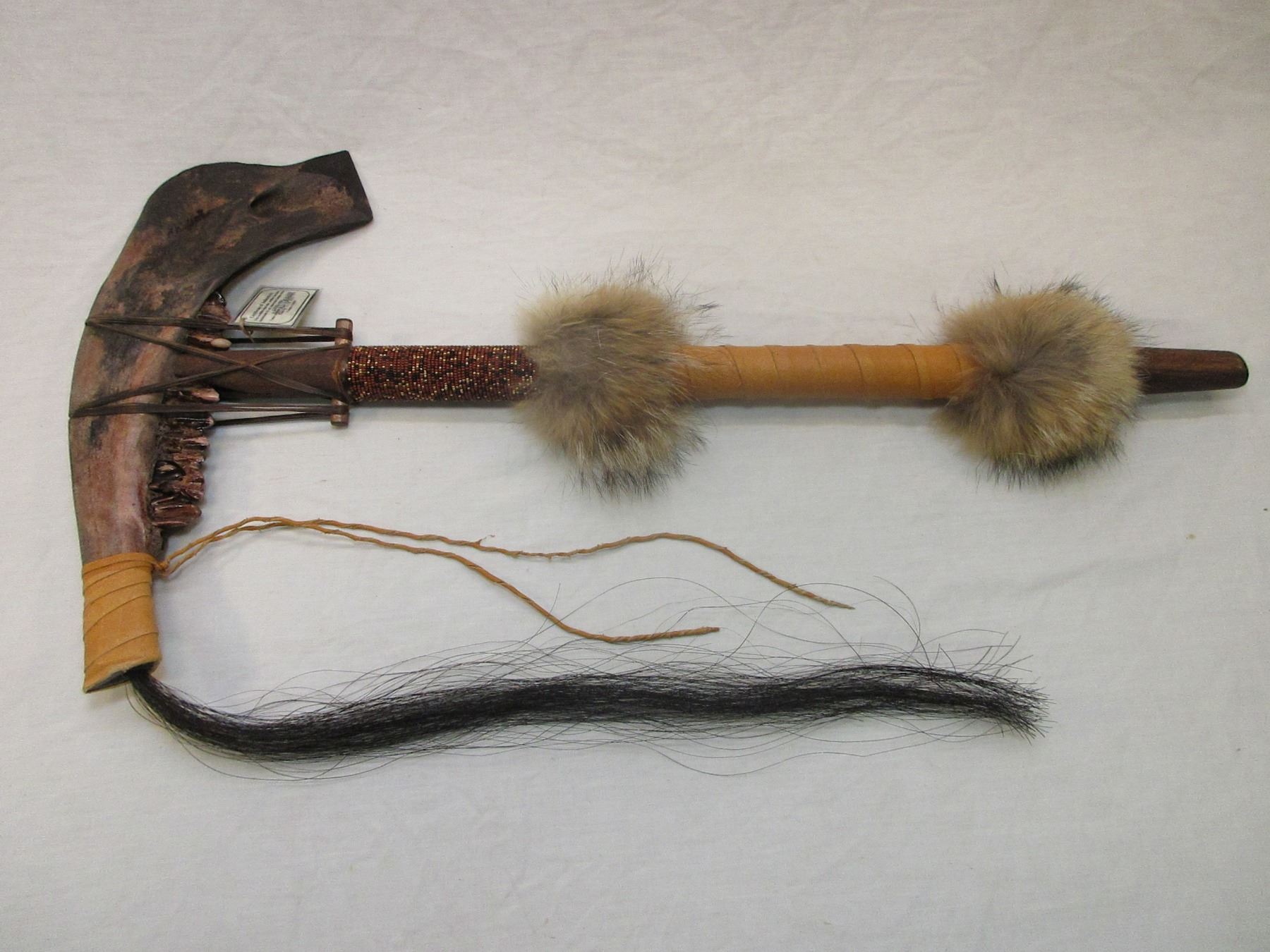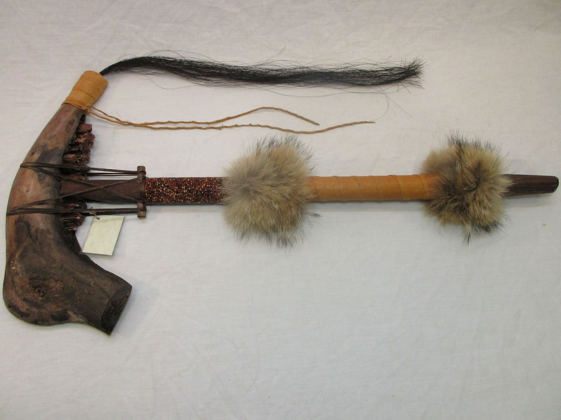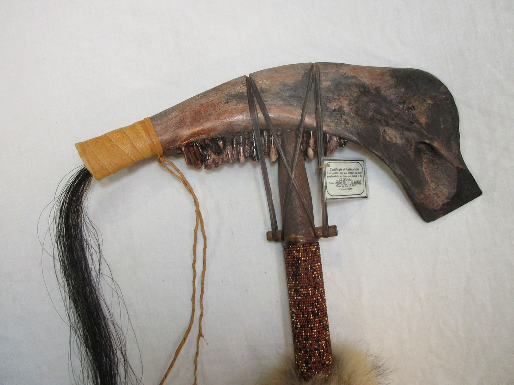 Buffalo Tomahawk- Contemporary Creek Tribe- Certificate of Authenticity- 26.5" X 13"- Beaded- Fur- Horsehair- Leather Wrapped