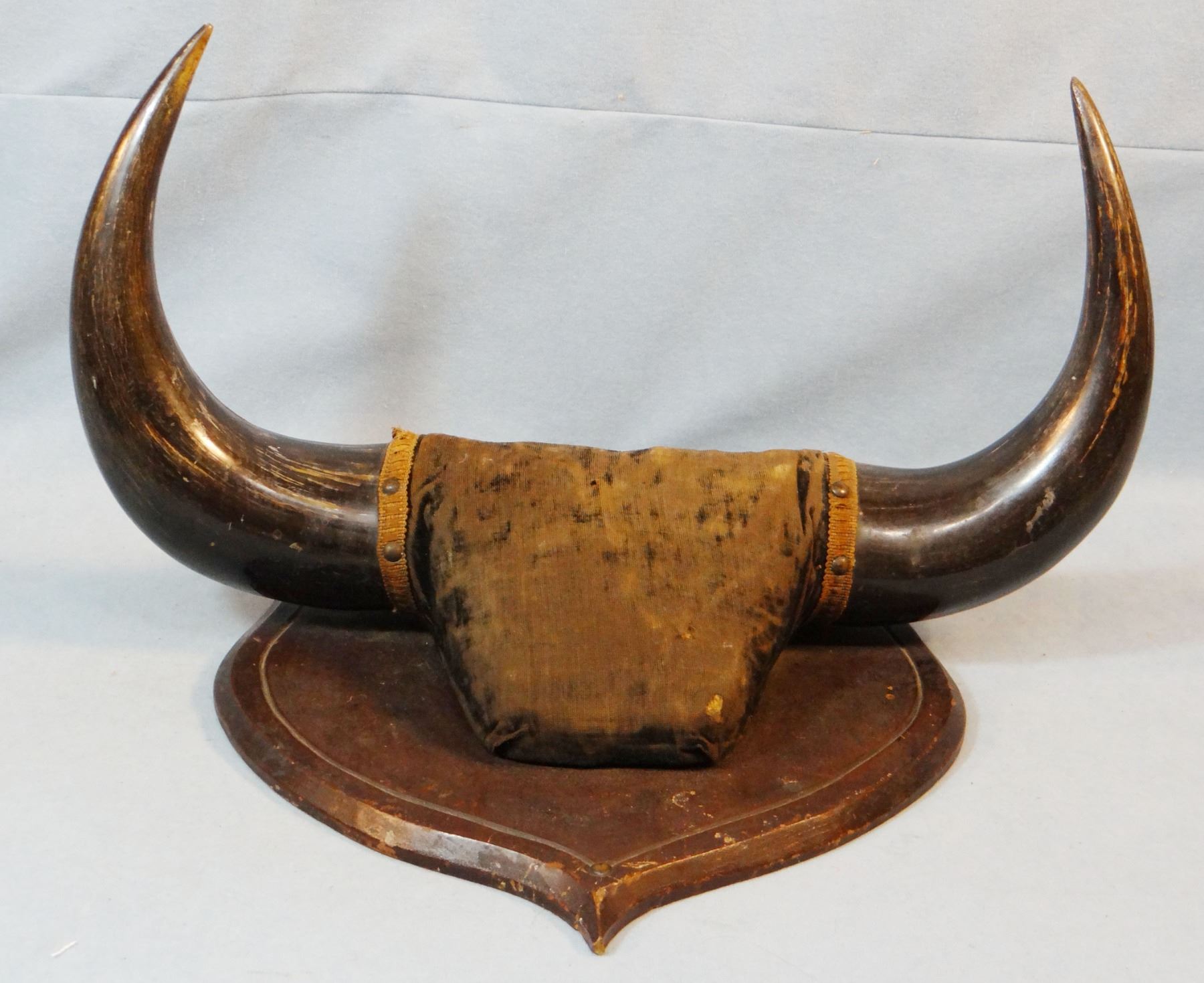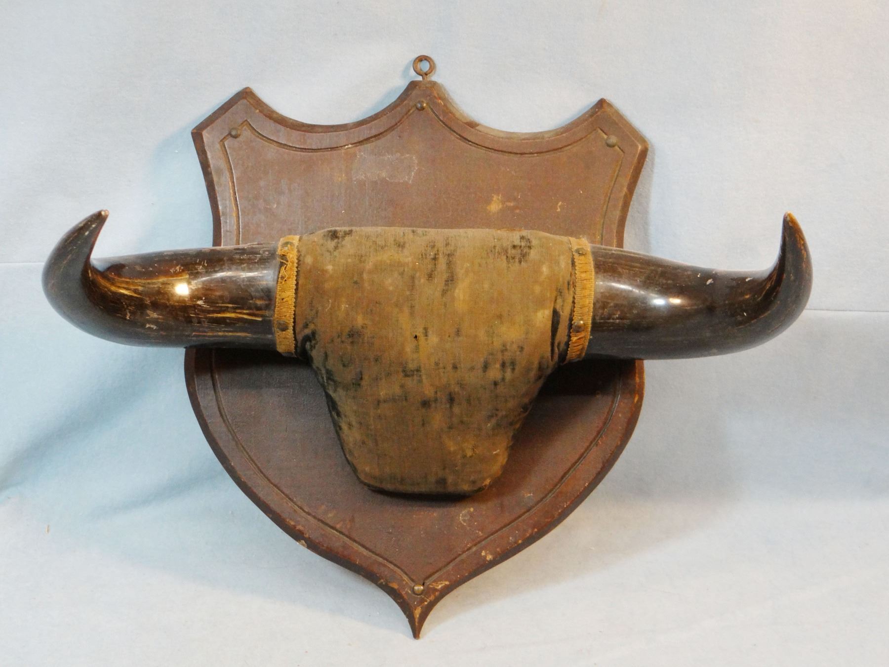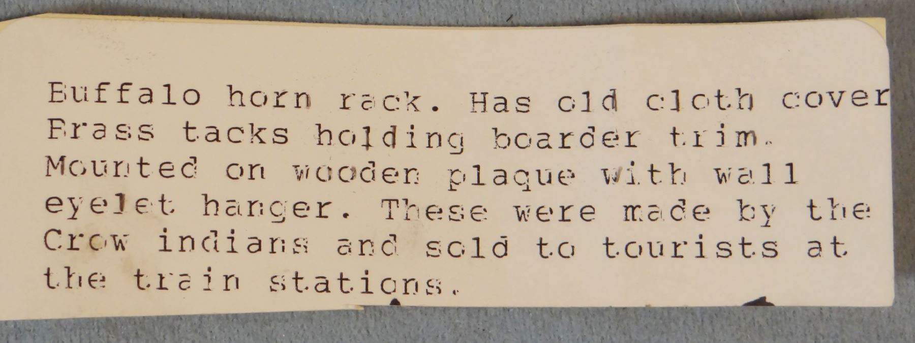 Buffalo horn rack, 17" spread, old cloth covered, made by Crow Indians to sell to tourists and at tr