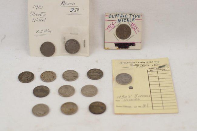 1907 and 1910 V cents Liberty nickels - 1939, 1942, two 1943, 1944, plus +