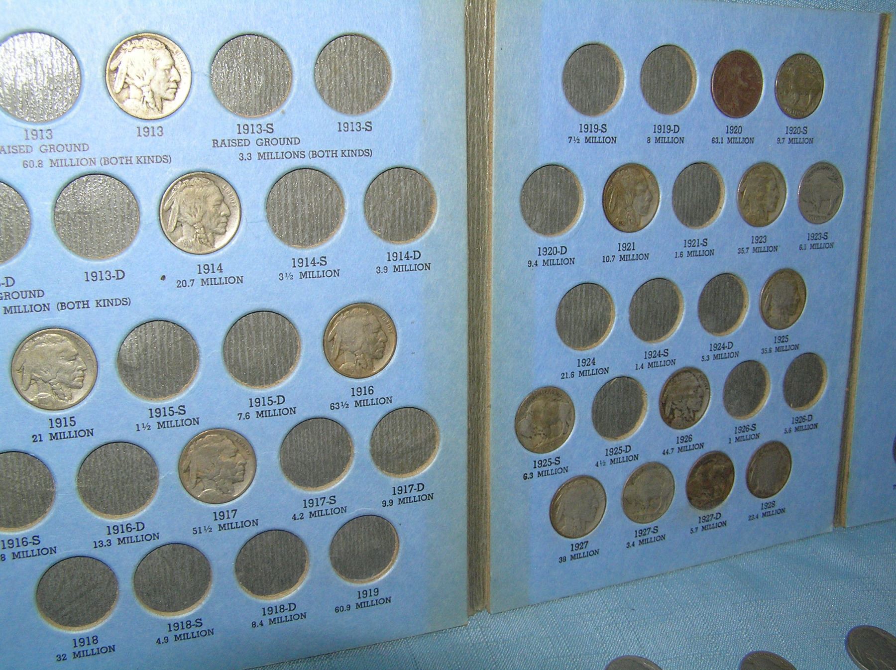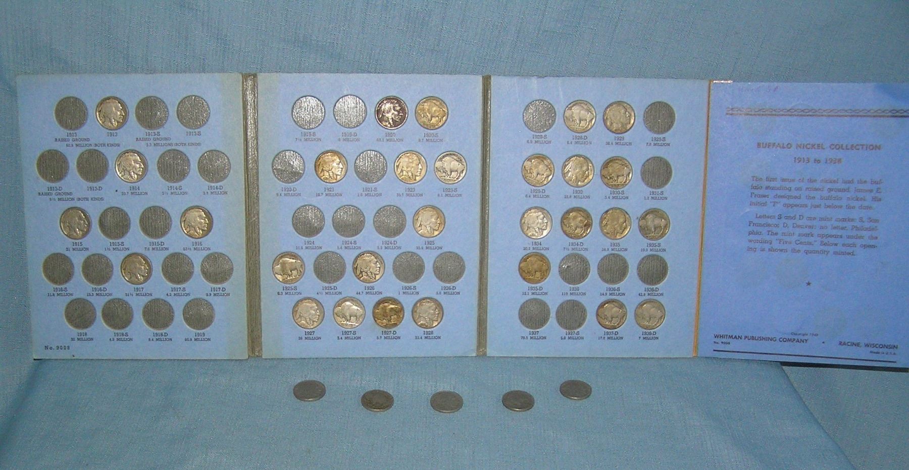 Buffalo nickle collection with booklet includes 1913, 1914, 1915, 1916, 1917 and many others from the 1920s and 1930s est. value $175.00-$200.00