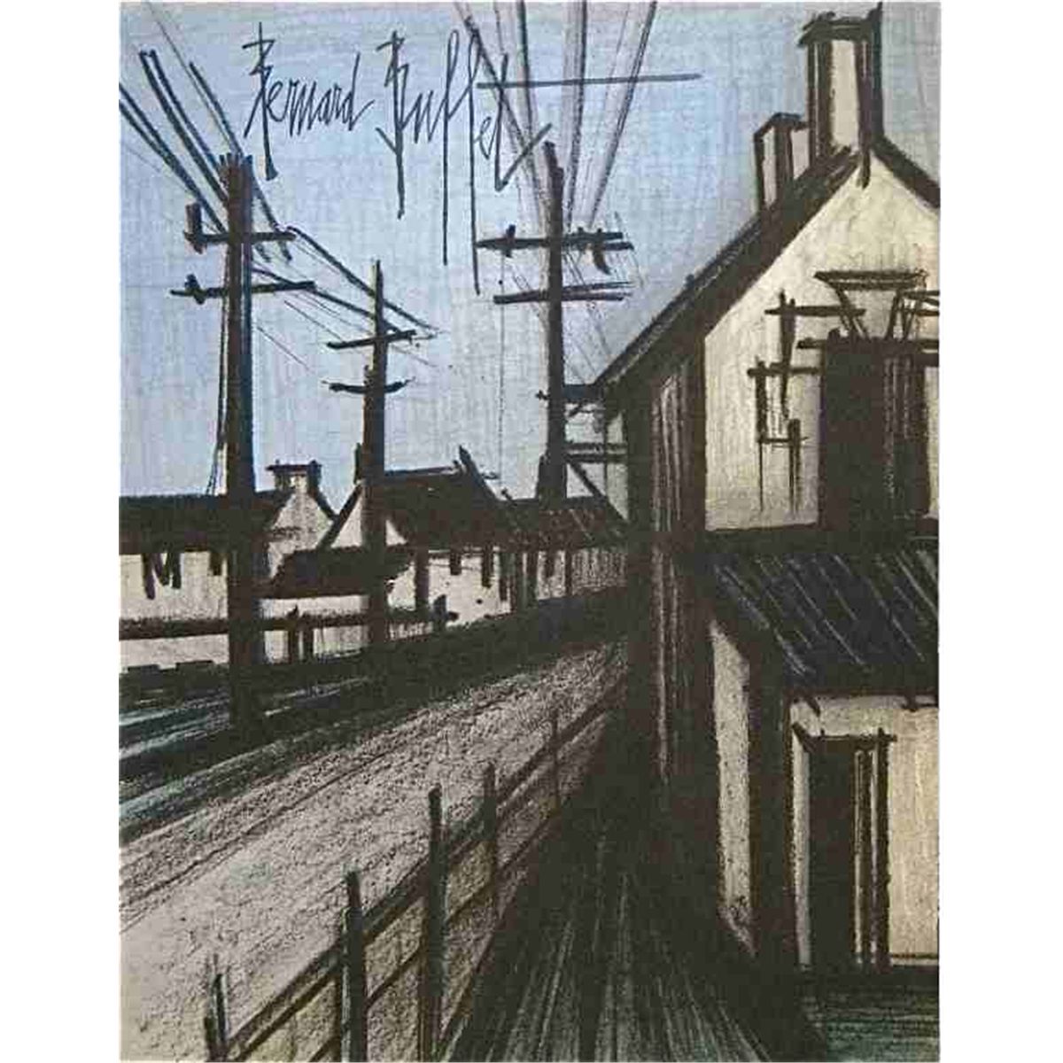 Bernard Buffet Original Lithograph "The Village Road" - Printed In Paris In 1968 By The Legendary Mourlot Atelier. Sheet Size: 12 1/4 X 9 1/2 Inches (310 X 240 Mm) Signed In The Stone - Professionally Framed & Matted - Comes With Certificate - -