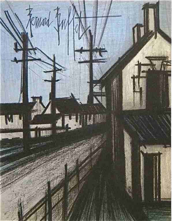 Bernard Buffet Original Lithograph "The Village Road" - Printed In Paris In 1968 By The Legendary Mourlot Atelier. Sheet Size: 12 1/4 X 9 1/2 Inches (310 X 240 Mm) Signed In The Stone - Professionally Framed & Matted - Comes With Certificate - -