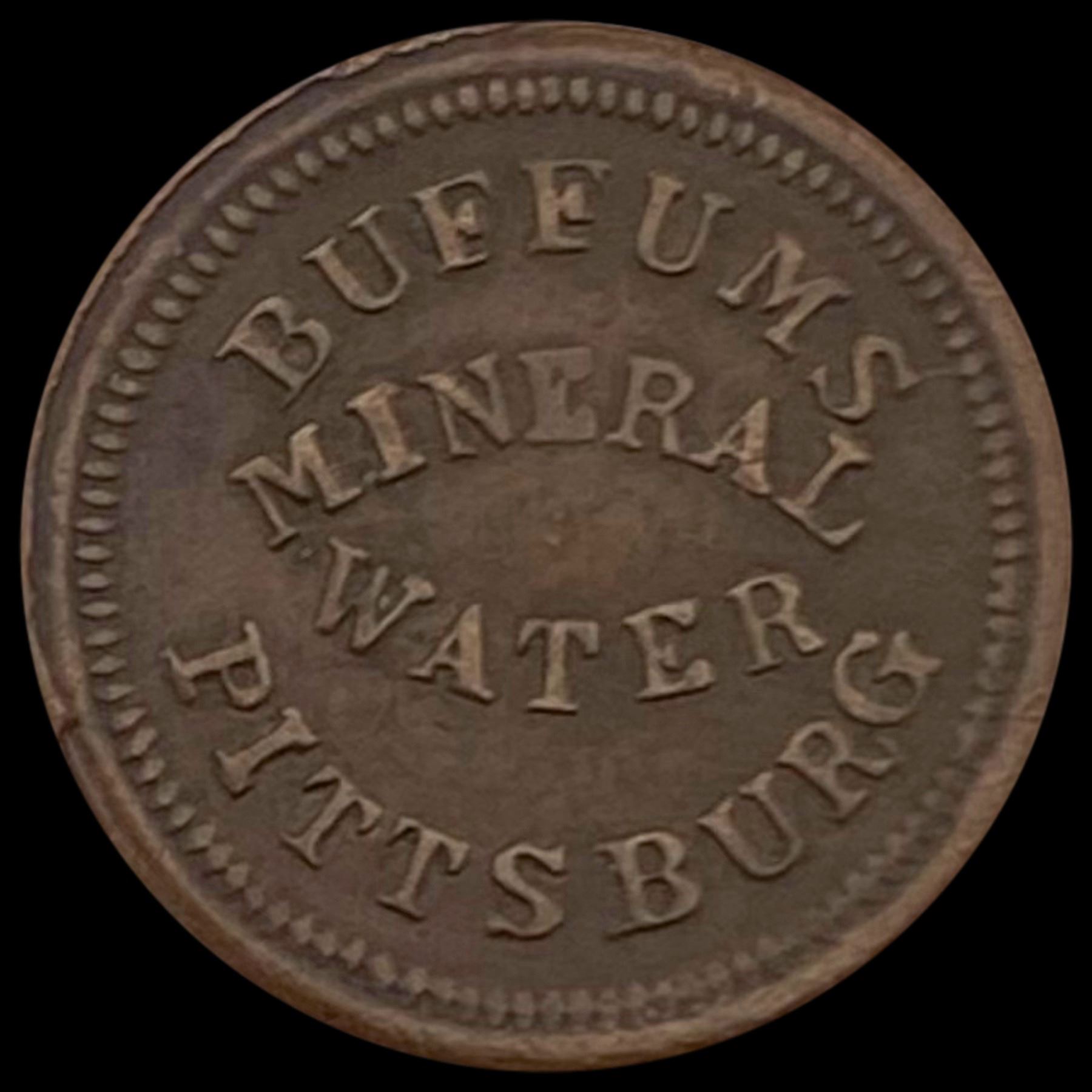 Buffum's Mineral Water Token Pittsburg CLOSELY U