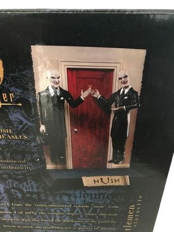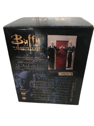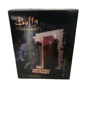 Buffy The Vampire Slayer The Gentlemen Statuette Hush Figurine - sculpted by Jeremy Bush and Michael Measles. Limited to 3,000 pieces. From Diamond Select. Direct from the Emmy-nominated episode "Hush" from season 4 of Buffy the Vampire Slayer comes this eerie statuette depicting two of the gentlemen ofn the prowl for hearts to steal. The gentlemen are a quartet of demonic villains that descended upon sunnydale, stealing the voices of the town residents so that they could do their nefarious work in silence. In the end, it was the voice of Buffy the Vampire Slayer that ended their reign of silent terror.