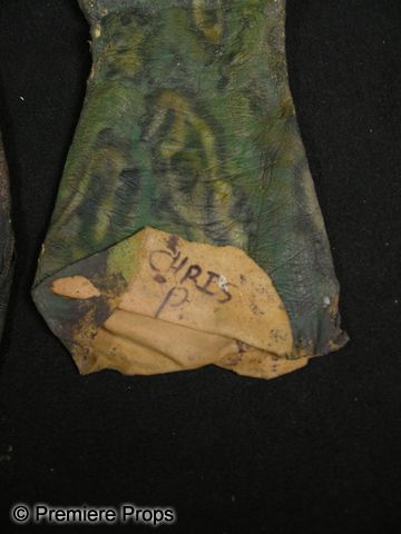 Premiere Props nor the consignor makes any warranties, expressed or implied, as to merchantability or fitness for a particular purpose, the correctness of the catalogue or other description of the physical condition, size, quality, rarity, importance, medium, provenance, exhibitions, literature, historical relevance of any property, intended use, condition of the property (including any condition report), correctness of description, origin, measurement, quality, rarity, importance, exhibition, relevance, attribution, source, provenance, date, authorship, condition, culture, genuineness, value, or period of the property. Additionally, neither Premiere Props nor the consigner makes any representation or warranty, expressed or implied, as to whether the Bidder acquires any copyrights, including but not limited to any reproduction rights of any property, or other intellectual property (including exhibition or reproduction rights) or whether the property is subject to any limitations such as ‘droit morale’ (moral rights) or other rights affecting works of art. Premiere Props does not make any representation or warranty as to title.