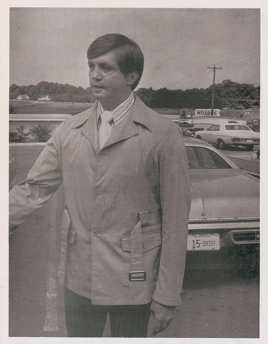Legendary no-nonsense Tennessee lawman (1937–1974) whose story was adapted into the popular Walking Tall films. Uncommon 7 x 9 cardstock photo of Pusser, signed diagonally in black ballpoint. In fine condition, with moderate contrast to the signature against his coat and some toning along bottom edge.