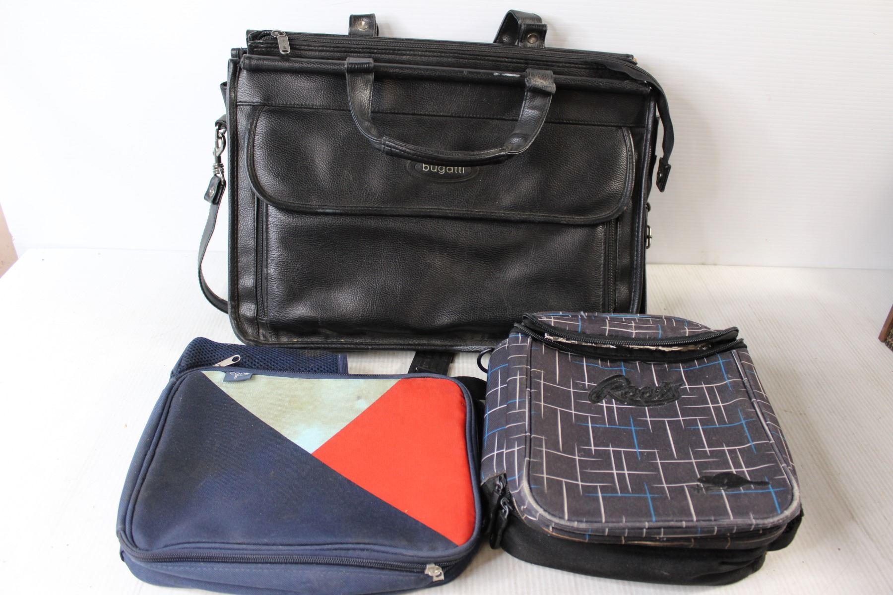 Bugatti Briefcase Handbag, (2) Heavy Duty Timers, Viking Speaker, Roots Lunch Bag, (3) Reusable Non