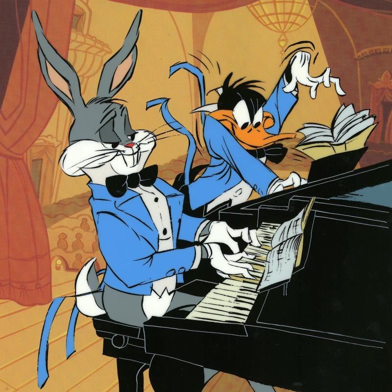 "Bugs And Daffy: In Concert" is a limited edition animation cel with hand painted coloring on sericel outline. The piece is numbered, hand signed by Chuck Jones (1912-2002), and includes a Certificate of Authenticity! Measures Approx: 12.5" x 10.5"