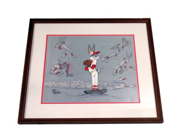 Bugs Bunny Warner Brothers framed hand painted animated film art. (approx. 23" x 20")