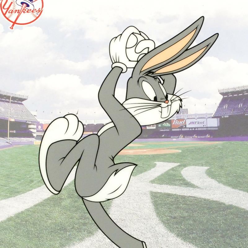 Familiar characters, vibrant colors, and careful details make this sericel one for both serious collectors and casual fans. "Bugs Bunny Pitching with the Yankees" is a limited edition sericel by Looney Tunes depicting the cartoon favorite, Bugs Bunny, winding up for a pitch at Yankee Stadium. Includes Certificate of Authenticity! Measures approx. 7" x 9" (with background), 6" x 8" (sericel).