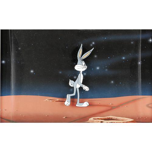 <B>Bugs Bunny "Spaced Out Bunny" Animation Production Background and Hand Painted Cel Original Art (Warner Bros., 1991).</B></I> Stellar, hand-painted background art from the production, "Spaced Out Bunny." The hand painted cel of Bugs Bunny is taken from an unidentified production. The art measures 15" x 9", and is matted and framed. In Excellent condition. Includes a certificate of authenticity. <BR><BR><B>Important notice:</B> Heritage usually auctions material at the rate of 200-250 lots per hour. On some occasions eBay Live bid software or the Internet may not be able to keep up with the pace of the auction. We recommend placing a realistic absentee bid now as insurance to avoid disappointment. Occasionally the auctioneer may eliminate or reject an eBay Live bid, and the auctioneer may also reopen a lot after the close of the eBay live bidding (usually because we missed an audience bid), and may reject your bid even if it shows you as the winning bidder. By bidding via eBay Live, you agree that Heritage may award the lot to another bidder at its sole discretion under the circumstances described above or any other reasonable circumstances. Since eBay bids are not shown to us until we open the lot on the floor, we treat those bids just like floor bids. In most cases the floor responds before the eBay bid is presented to us, due to Internet lag time, so for consistency we have made it a policy that floor bids are always considered first over tie eBay live bids. Also please note that all Heritage lots purchased through eBay Live carry a 22.5% Buyer's Premium. Please make sure you read the Terms and Conditions before you bid. This lot is being auctioned in conjunction with a live floor auction by Heritage Auction Galleries. All final auction and invoice information will be supplied by Heritage Auction Galleries, and all other information should be considered preliminary. Lot:41001 <BR><BR><B>Winning Notification and Billing:</B> After the FINAL session in this auction is complete, Heritage will send e-mail and snail mail invoices. This process normally takes several days. All final auction and invoice information will be supplied by Heritage Auction Galleries, and all other information should be considered preliminary. <BR><BR>This auction will be conducted on a live auction floor and over the Internet through eBay Live. If you choose to place an absentee bid, please take a moment to <font color='#0000ff'><u><a href='http://pages.ebay.com/liveauctions/help/before/laabsentee.html'>learn how eBay Live absentee bidding works</a></u></font><font color='#000000'>