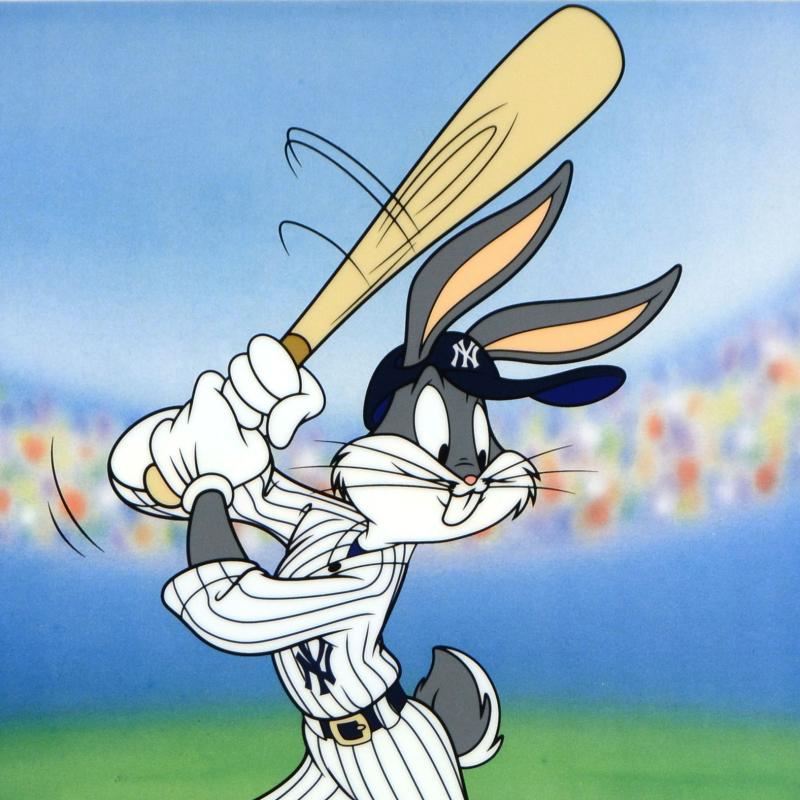 "Bugs Bunny at Bat for the Yankees" is a limited edition sericel with a vivid full-color background by Looney Tunes, marked with the MLB logo and the Yankees Logo! This piece comes framed. Includes Certificate of Authenticity! Measures approx. 16" x 19" (frame), 9.5" x 13.5" (image).