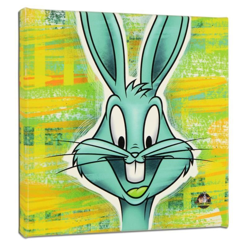 "Bugs Bunny" is a limited edition giclee on gallery wrapped canvas by Looney Tunes. This piece comes from an edition of 500 and bears an imprint of Looney Tunes' official seal. Includes Certificate of Authenticity. Measures approx. 10" x 10" (image)