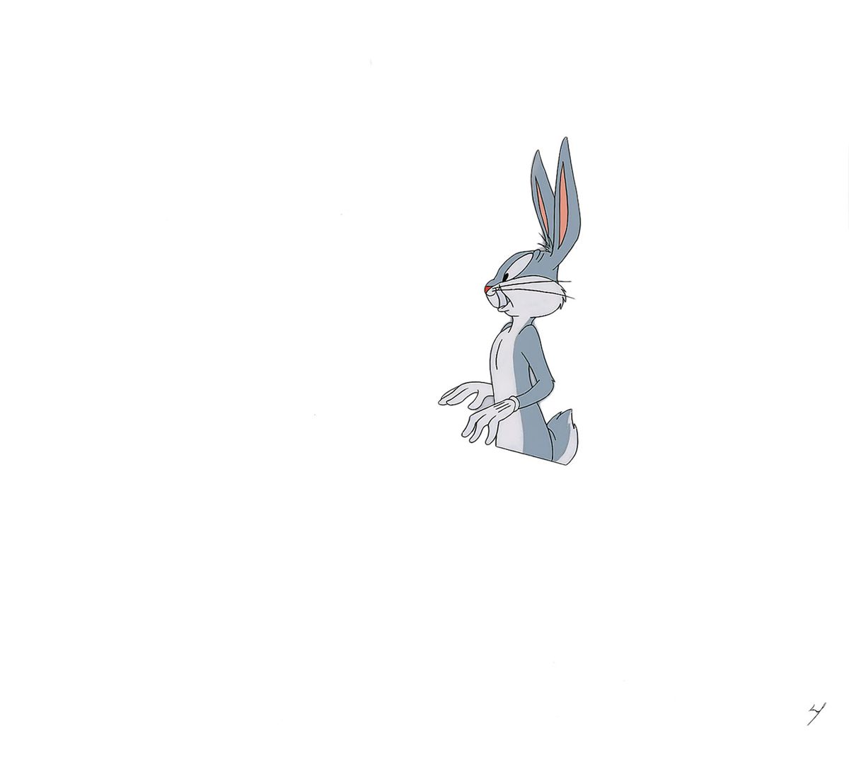 (Warner Brothers Studios, Circa 1950s) Original production cel featuring Bugs Bunny from a Warner Bros. theatrical cartoon. Image measures 2.5 x 5, with overall dimensions of 13.5 x 10.5. In fine condition.