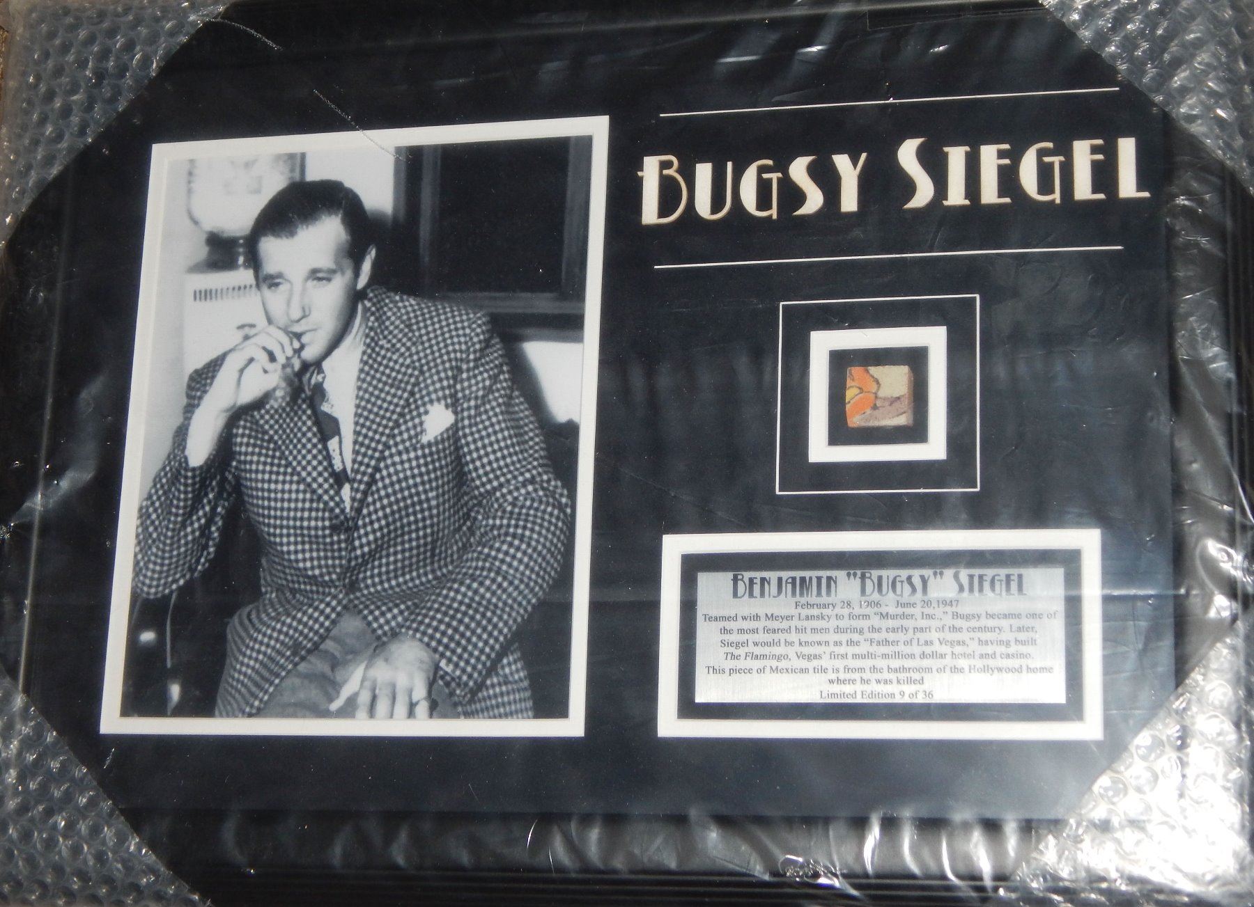Limited edition framed original piece of tile owned by Bugsy Siegel and removed from the Hollywood Hills home the famed gangster was murdered in. All items come with a certificate of authenticity good for the life of the piece.