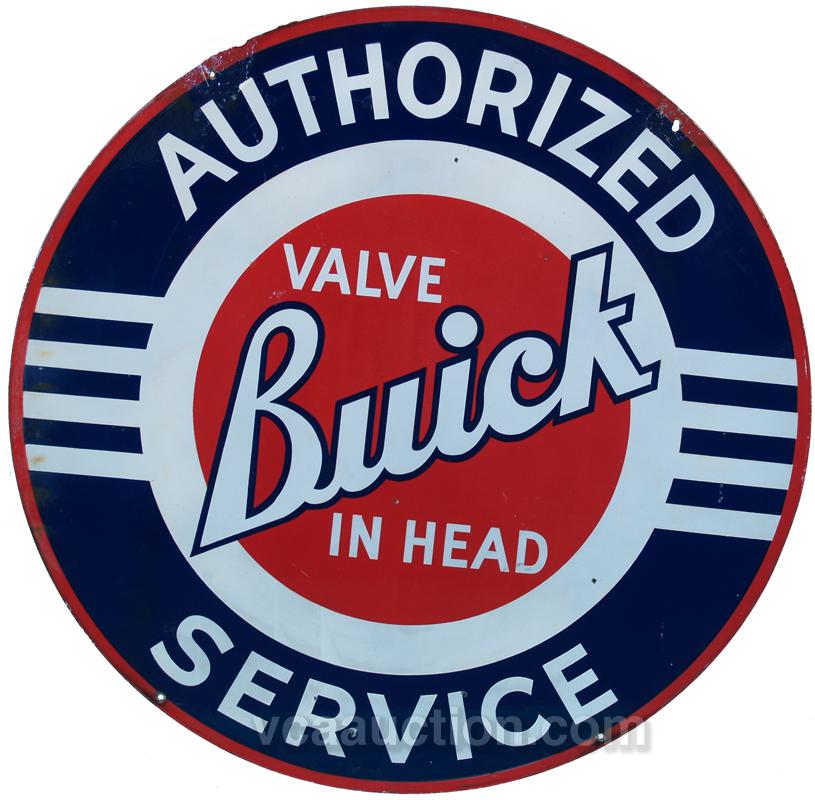 Buick Double Sided Porcelain Sign "Valve In Head" - 42" Diam. Has a few small chips and some minor touch-up.