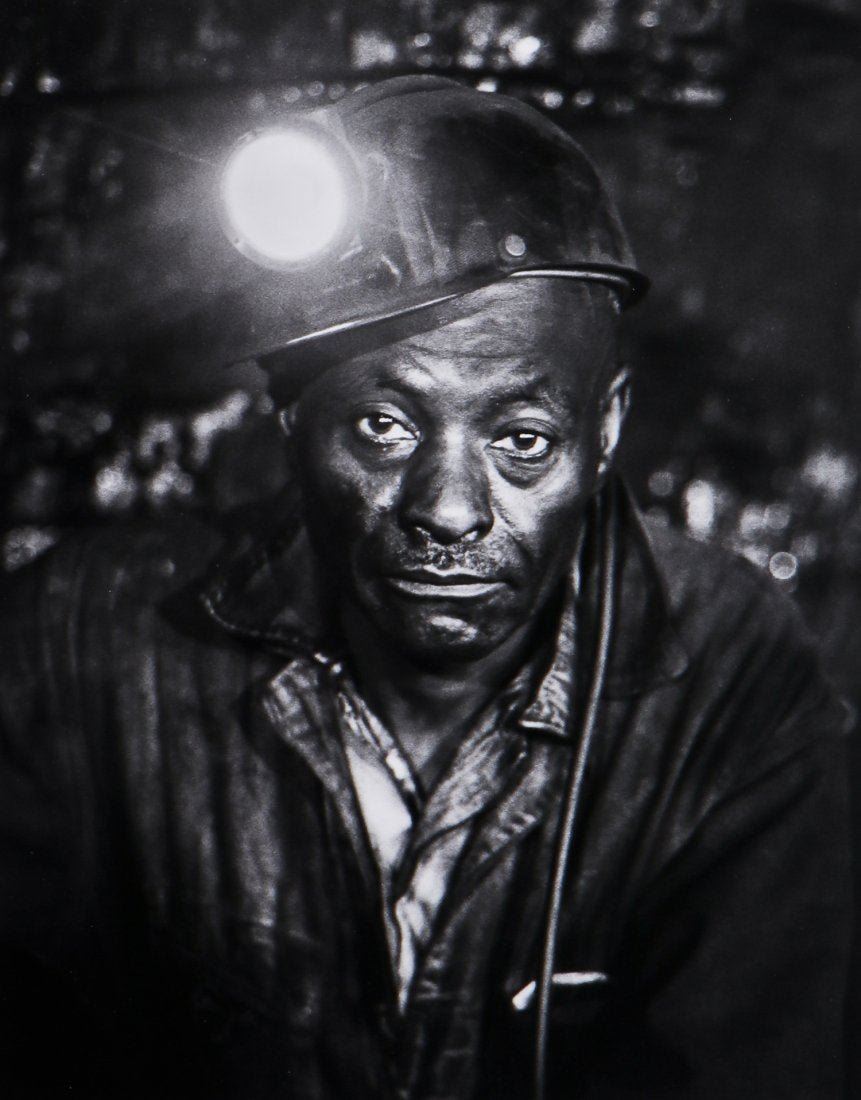 Builder Levy (American, 20th c.) Portrait of a Miner from the Appalachia Series, silver gelatin photograph, signed on verso. Size: 12.5'' x 10'',