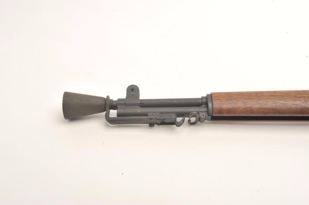 Built-up Garand M1-C semi-automatic rifle with Kriger Match Grade barrel, .30 caliber, military finish, wood stock, leather sling, S/N 3838280, with a G & H side mounted Weaver scope displaying fine optics; in overallfine condition as a “shooter”. (C&R/PPT). Est.: $1,500-$3,000.