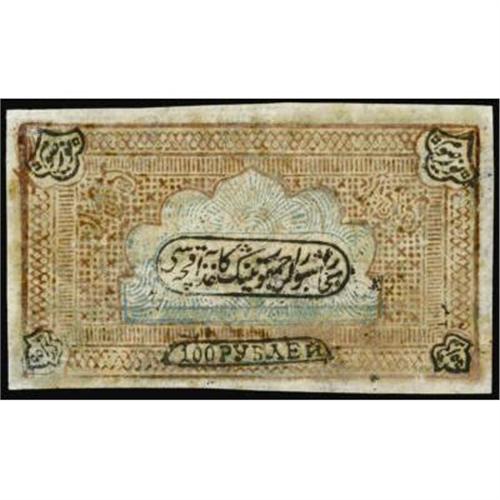 <style type="text/css"> body, td, th { font-family: Arial, Helvetica, sans-serif; font-size: 12px; color: #482424; margin: 0px; padding: 0px; } #header { background-image: url(http://www.bowersandmerena.com/ebay/images/template_v3_01.gif); clear: both; background-color: #590303; border-top-width: 2px; border-top-style: solid; border-top-color: #B38C4F; } #header #header_wrapper { height: 75px; clear: both; width: 800px; margin-right: auto; margin-left: auto; background-image: url(http://www.bowersandmerena.com/ebay/images/template_v3_03.gif); background-repeat: no-repeat; background-position: right; color: #F3EDCC; } #header #header_wrapper #header_logo { float: left; height: 75px; width: 444px; background-image: url(http://www.bowersandmerena.com/ebay/images/template_v3_02.gif); background-repeat: no-repeat; font-size: 10px; text-transform: capitalize; color: #B38C4F; } #header #header_wrapper #header_right { float: left; height: 75px; width: 356px; text-align: right; } #header #header_wrapper #header_right #headerLoginBtn { margin-bottom: 30px; } #header #header_wrapper #header_right input#txtSearch { color: #B49056; border: 1px solid #B49056; width: 175px; padding-top: 3px; padding-right: 3px; padding-bottom: 4px; padding-left: 3px; } #nav { height: 37px; background-image: url(http://www.bowersandmerena.com/ebay/images/template_v3_05.gif); clear: both; } #nav #nav_wrapper { height: 35px; width: 800px; margin-right: auto; margin-left: auto; border-left-width: 1px; border-left-style: solid; border-left-color: #B38C4F; } #nav #nav_wrapper a { padding-right: 15px; padding-left: 15px; border-right-width: 1px; border-right-style: solid; border-right-color: #B38C4F; height: 25px; padding-top: 10px; display: block; float: left; text-decoration: none; font-weight: bold; color: #5D0303; } #nav #nav_wrapper a:hover { color: #B38C4F; } #nav #nav_wrapper #search { float: right; padding-top: 7px; } #nav #nav_wrapper #search #txtSearch { font-family: Arial, Helvetica, sans-serif; font-size: 10px; text-transform: uppercase; color: #D2AE75; border: 1px solid #B38C4F; padding: 3px; } #content_bgd { background-image: url(http://www.bowersandmerena.com/ebay/images/template_v3_09.gif); background-repeat: repeat-y; background-position: center; padding-top: 15px; padding-bottom: 15px; background-color: #FBFBDB; } #content_wrapper { clear: both; height: auto; width: 800px; margin-right: auto; margin-left: auto; } .LotDetailWhite { line-height:normal; font-size:13px; font-family: arial,helvetica,sans-serif; color: White; font-weight: bold; } .LotDetailInformation { line-height:normal; font-size: 13px; font-family: arial,helvetica,sans-serif; } .LotDetailMessage { line-height:normal; font-size: 13px; font-family: arial,helvetica,sans-serif; color: red; } } tr.HeaderAuctionTitle td { color: #000000; font-weight: bold; padding: 2px; background-image: url(http://www.bowersandmerena.com/ebay/images/template_v3_05.gif); background-repeat: repeat-x; border-bottom-width: 1px; border-bottom-style: solid; border-bottom-color: #B38C4F; } table.AuctionSummary a, table.AuctionSummary a:link, table.AuctionSummary a:visited { color: #0000FF; text-decoration: none; } } td.tableHeaderLeft { border-left-width: 1px; border-left-style: solid; border-left-color: #B38C4F; } td.tableHeaderRight { border-right-width: 1px; border-right-style: solid; border-right-color: #B38C4F; } td.tableCellMiddle { border-left-width: 1px; border-left-style: solid; border-left-color: #B38C4F; border-right-width: 1px; border-right-style: solid; border-right-color: #B38C4F; padding: 5px; } tr.footer td { border-top-width: 1px; border-top-style: solid; border-top-color: #B38C4F; } </style> </head> <body> <div id="header"> <div id="header_wrapper"> <div id="header_logo"> </div> <div id="header_right"> </div> </div> </div> <div id="nav"> <div id="nav_wrapper"> <a href="http://www.bowersandmerena.com">Our eBayLive Auctions</a> <a href="#PaymentInfo">Payment Information</a> <a href="#ShippingInfo">Shipping Information</a> <a href="#About">About Bowers and Merena</a> </div> </div> <div id="content_bgd"> <div id="content_wrapper"> <table width="100%" border="0" cellpadding="5" cellspacing="0" class="AuctionSummary"> <tbody> <tr class="HeaderAuctionTitle" style="height: 25px;"> <td align="left" class="tableHeaderLeft" > </td> <td align="center" class="tableHeaderRight"> <span style="font-size: large;">Lot #2229. Russian Central Asia. Bukhara Emirate, Bukhara Soviet Peoples Republic, 1920-1923 Ruble Issues.</span> </td> </tr> <tr> <td colspan="3" class="tableCellMiddle"> Lot of 2 notes, both are 100 Rubles, P-S1036. One is an unfinished specimen or error since it is missing the black text overprint on the light blue and red side of the note, AU+ to Unc.; the second is issued and is in AU to Unc. condition. Rare variety or error.