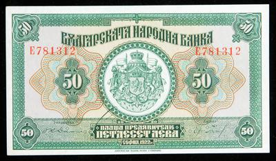 Bulgaria. 50 Leva, 1922. P-37. Green. Boy shepherd with flute. Pick only goes up to EF. This is a choice note with nice margins and bright colors by American Banknote Company. Included in this lot is a Belgium 100 Francs - 20 Belgas. Orange. Very Fine. Lot of 2 notes. Bulgaria 50 Leva, Uncirculated.