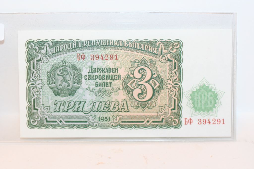 This lot is a 1951 bulgarian people's republic 3 jieba note