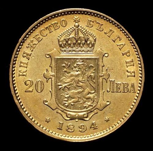 Bulgaria - Ferdinando I (1887-1918) - 20 Leva 1894 - Zecca: Kremnitz - Diritto: Effigie del Re a sinistra - Rovescio: stemma coronato -