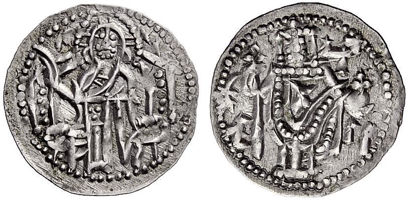 Medieval European Coinage. Bulgaria. Ivan Aleksander, 1331-1371 . Grosh, Tarnovo, AR 1.54 g. Christ Pantokrator enthroned facing; in upper field, IC – XC. Rev. The Emperor standing facing, holding long cruciform sceptre and globus cruciger. Raduchev & Zekov type 1.13.1-2. Yokourova 71. Extremely fine