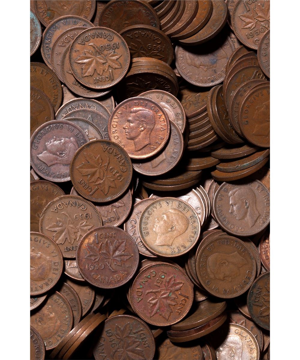Bulk Lot of George VI Small Cents. 1937-1952. Weight 9.1 kg, approx. 2,800 pcs. A broad range of grades are represented. Viewing highly recommended. Sold as-is, no returns.