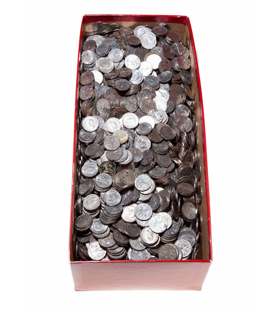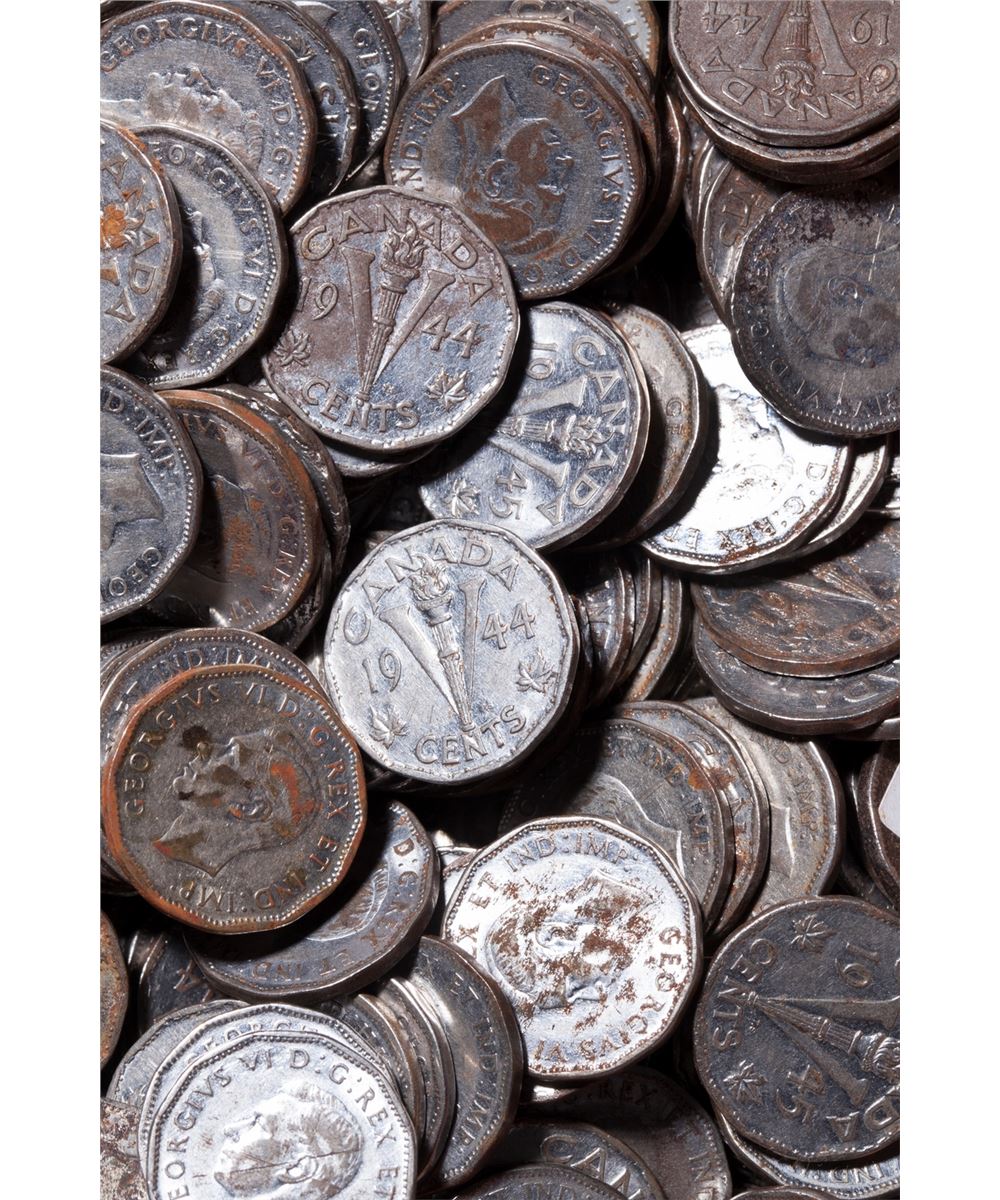 Bulk Lot of George VI Steel 5 Cents. 1944-1945. Weight 11.9 kg, approx. 2,600 pcs. Viewing highly recommended. Sold as-is, no returns.