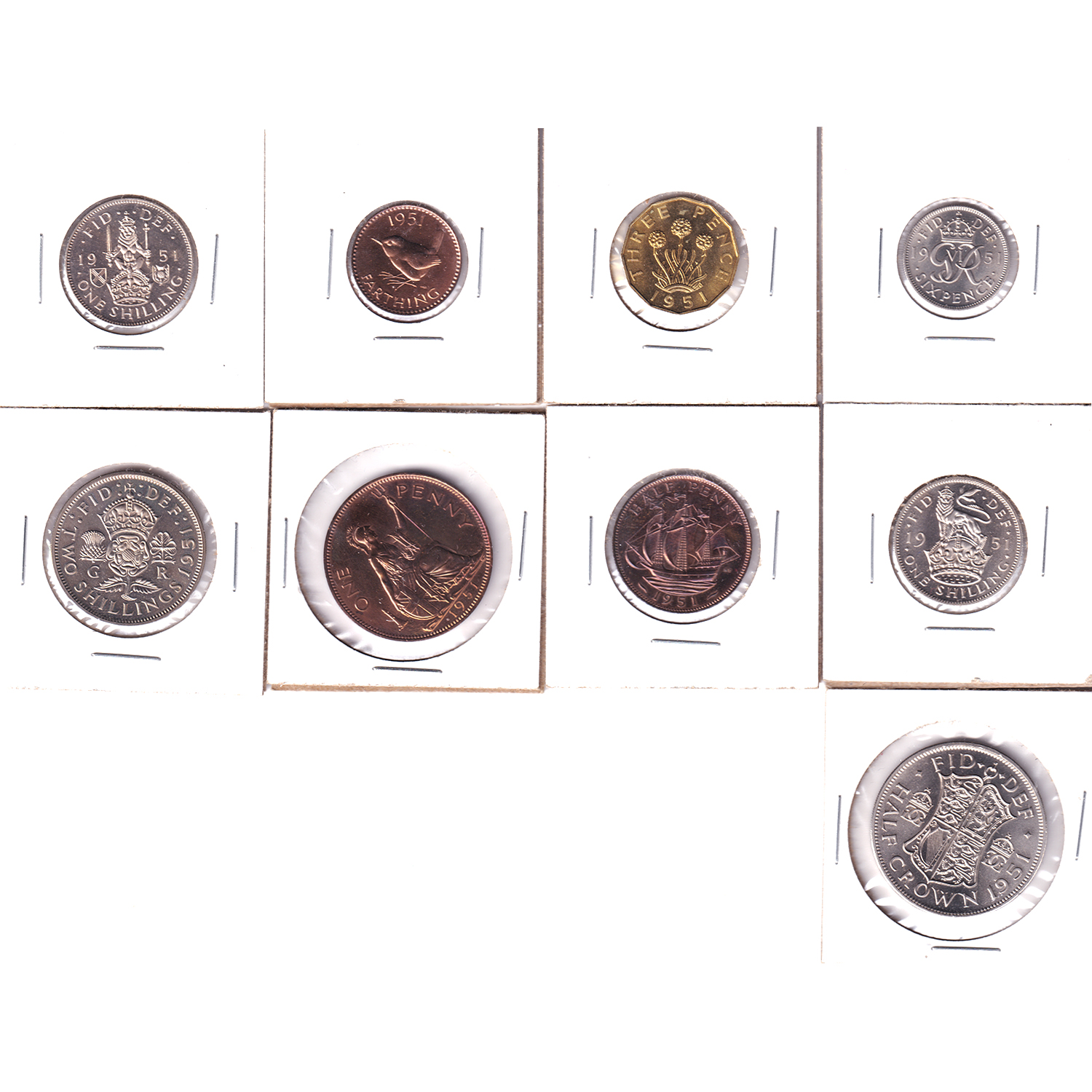INCLUDES: six pence, one penny, half crown, & more! Sold as is; please see images for details. 9pcs.