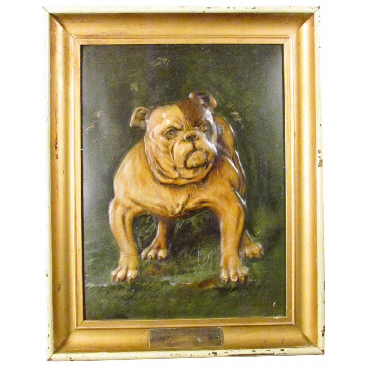 Bull Dog Segars Embossed Heavy Board Sign. Depicting Bull Dog with Segars embossed on sign. Copyright 1900. Original frame with brass placque by John W. Merriman. Sligh damage on left paw otherwise very good condition. 15 1/2 X 19 1/2 inches.