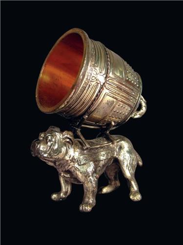 Bull Dog Spoon Holder, silver plated. Some silver loss otherwise excellent condition. 6 inches tall.