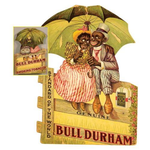 Bull Durham Tobacco Die Cut Cardboard, two sided string hanger sign. Tears at 5/9/12:00 otherwise good condition with strong colors. 7 X 10 inches.