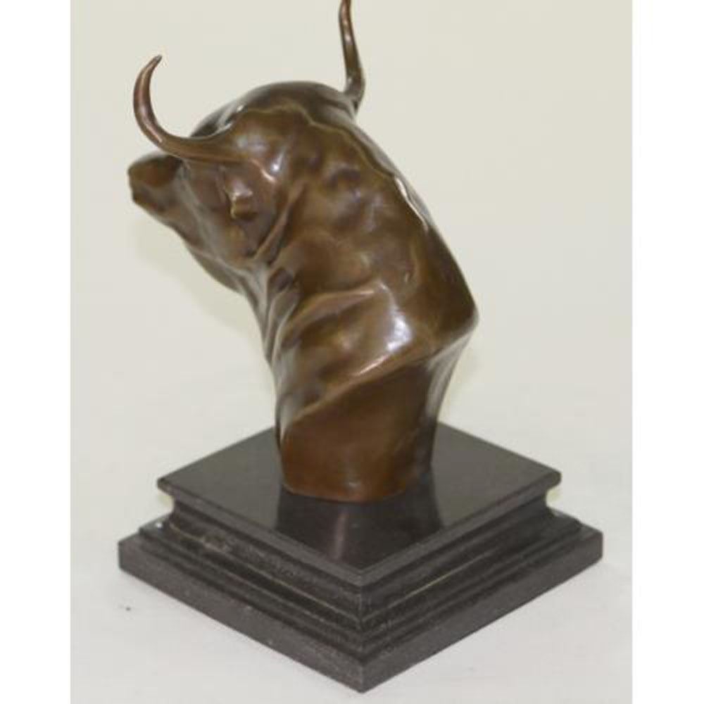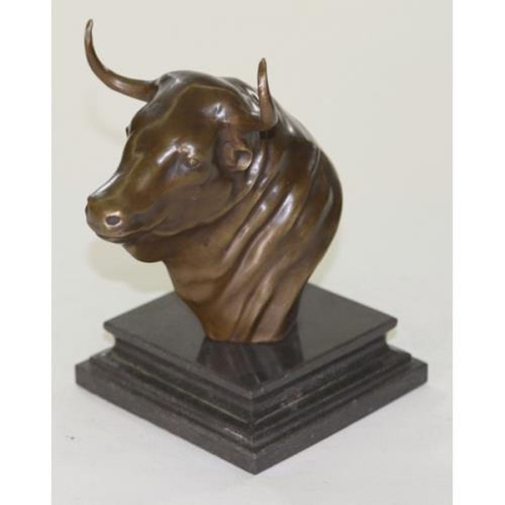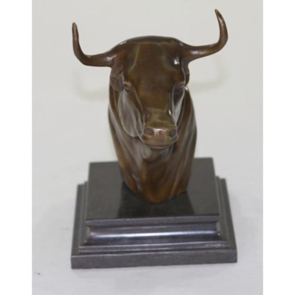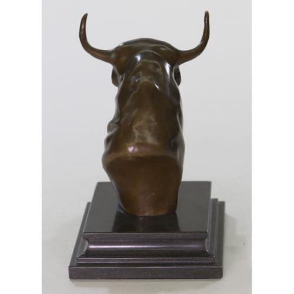 This expressive Bronze Bull Bust Sculpture from renowned artist blends natural inspiration with a contemporary perspective and look to create a sense of vitality and living color and texture. The Bull Bust is an iconic image from the American West, rendered in the finest bronze and finished in warm, lifelike Brown and special patina techniques to produce stunning results. This sculpture was cast using the Lost Wax Method and has a dark brown patina. Dimensions: Height 9 X Width 6 Inches. Weight: 6 LBS.