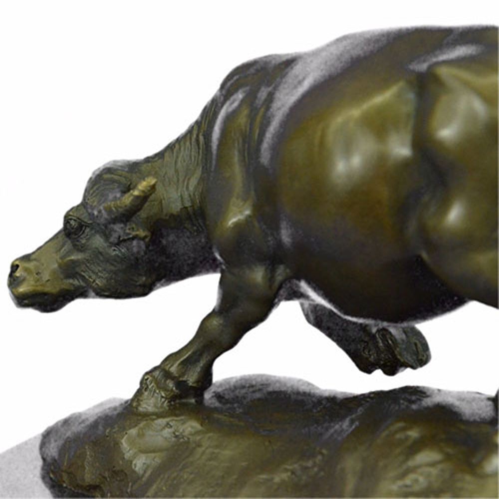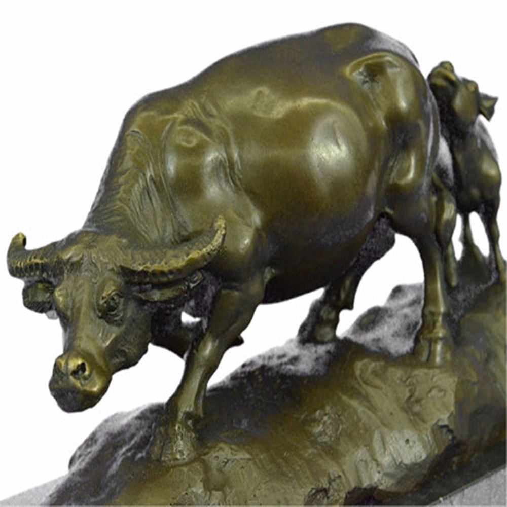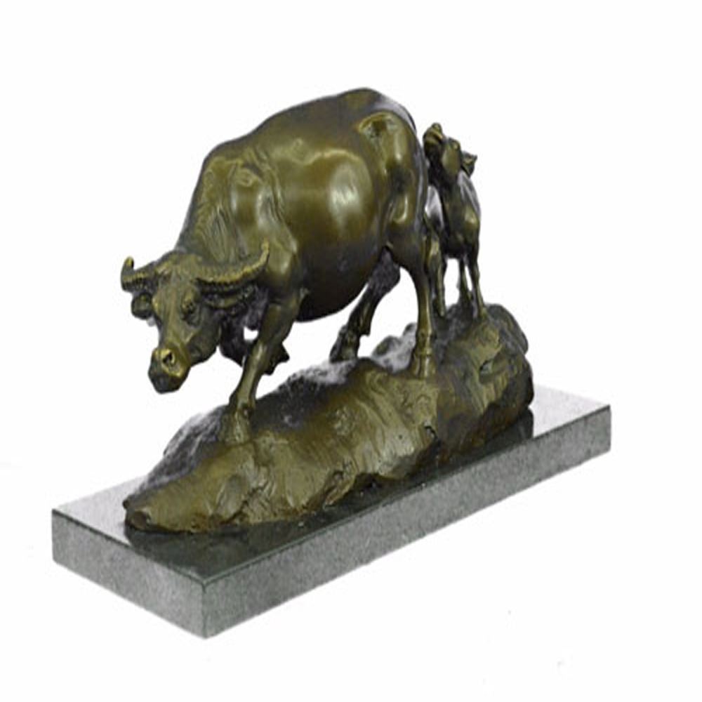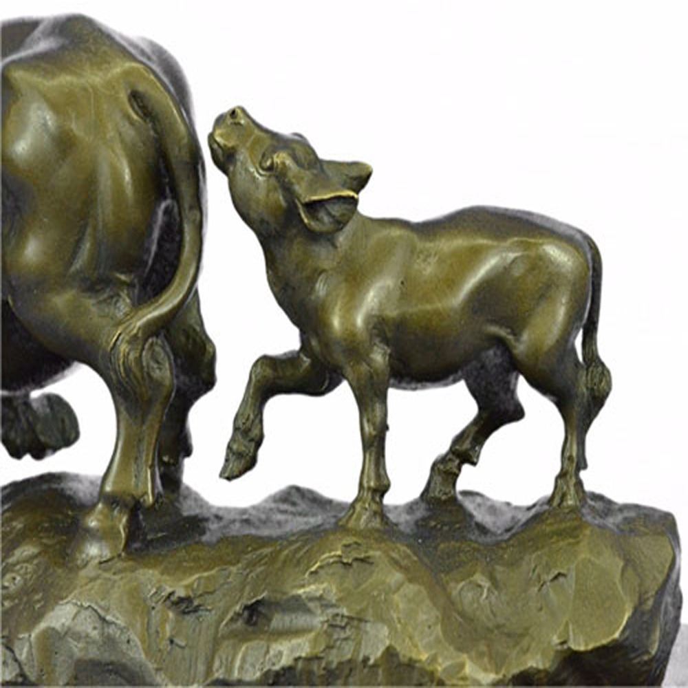 This Sculpture shows the relationship between parent and child. Even animals have the natural instinct to love and nature their children, even when they are being pests. Here you see a baby bull being curious and frisky as children are, with the utmost curiosity he begins to lick his fathers tail. The father bull is spooked with unexpected surprise that his son has given him. This Sculpture depicts a funny yet touching moment between animals and the parent child relationship, depicting the patience and time that it takes to be a parent. This Sculpture was cast using the Lost Wax Method and is mounted on a marble base. Bronze Dimensions with Marble Base: Height 6 X Width 12 inches. Weight: 11 LBS.