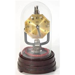 Bulle electric clock under a glass dome on a stepped brown Bakelite base, 26cm high